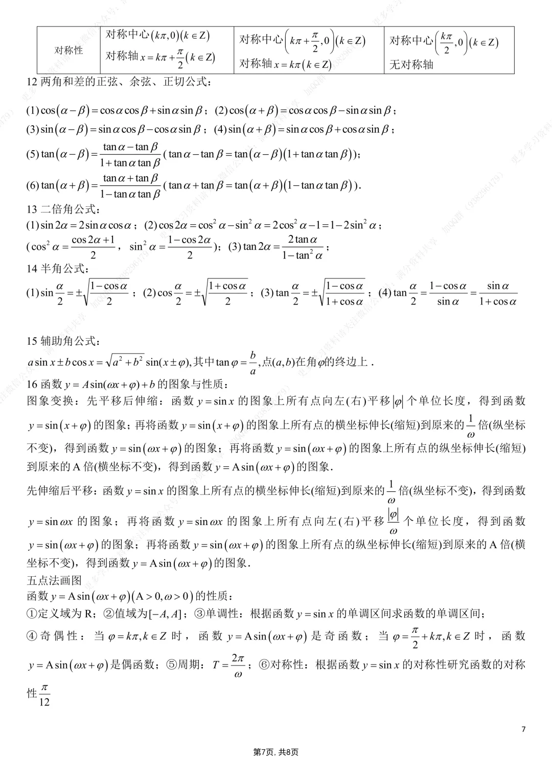 15.2026年高中数学思维导图、公式考点总结(pdf分享)