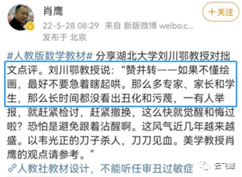 针对此次人教版教材插图事件,肖教授转发了刘教授的微博链接,说明他们的观点是一样的。不过也正常,正所谓物以类聚,人以群分。