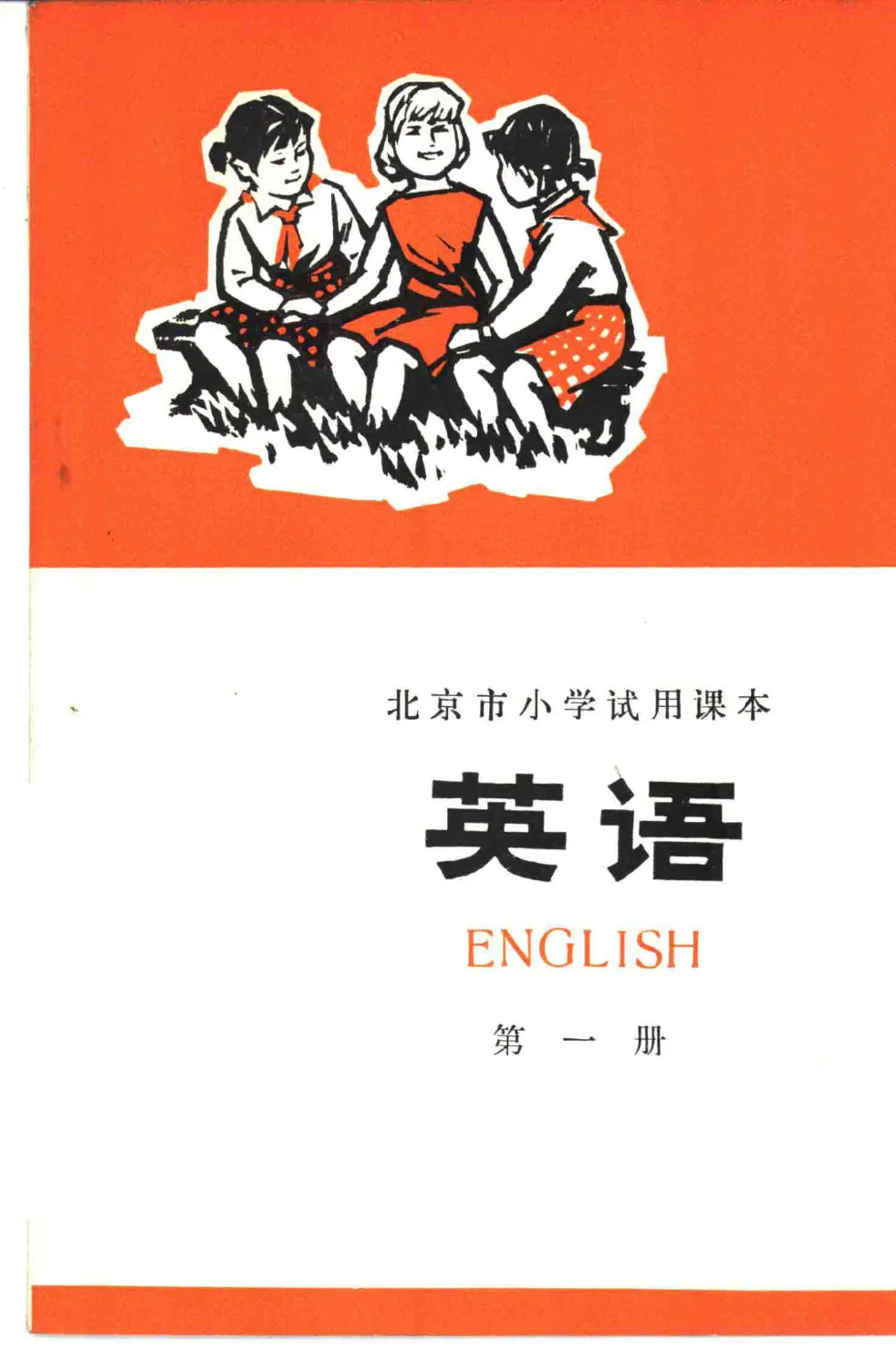 第一册封面:三个戴红领巾的孩子,红白配色,充满时代气息