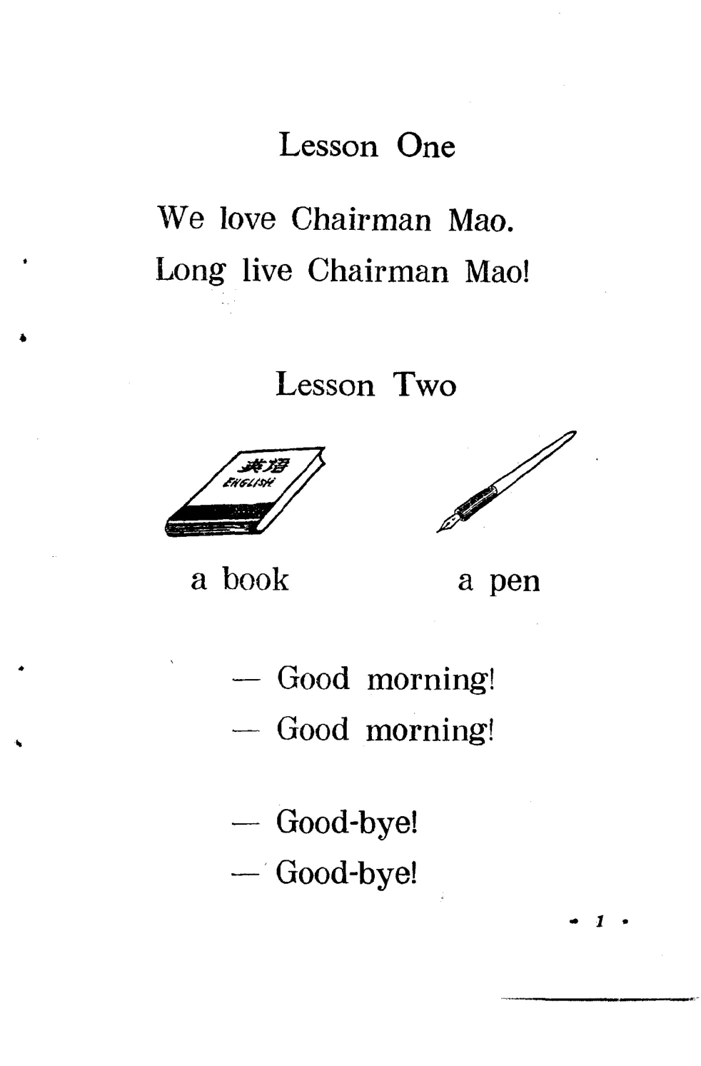 好,终于到正文了。翻开第一册的Lesson One,全课只有两行字: