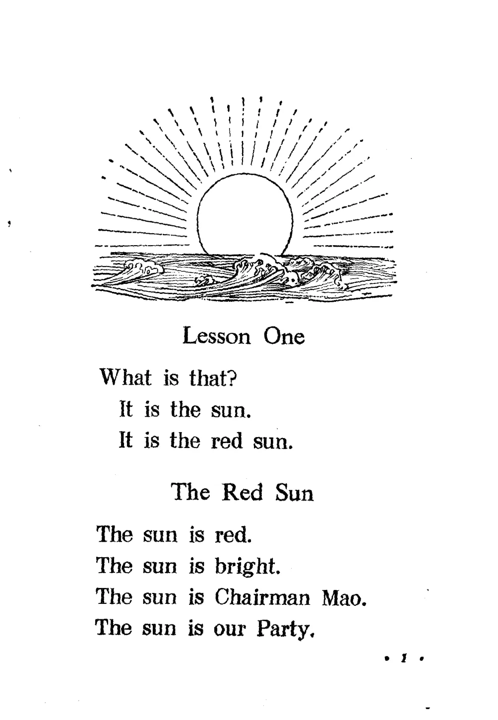 The sun is red. The sun is bright. The sun is Chairman Mao. The sun is our Party.