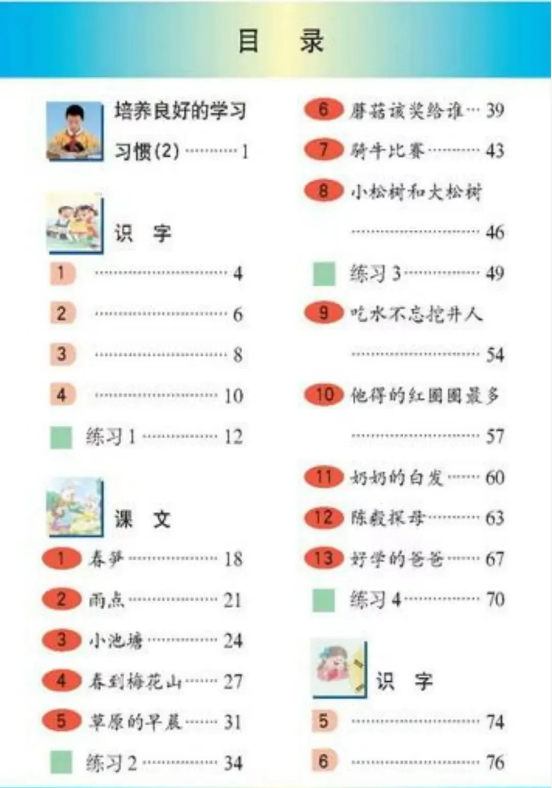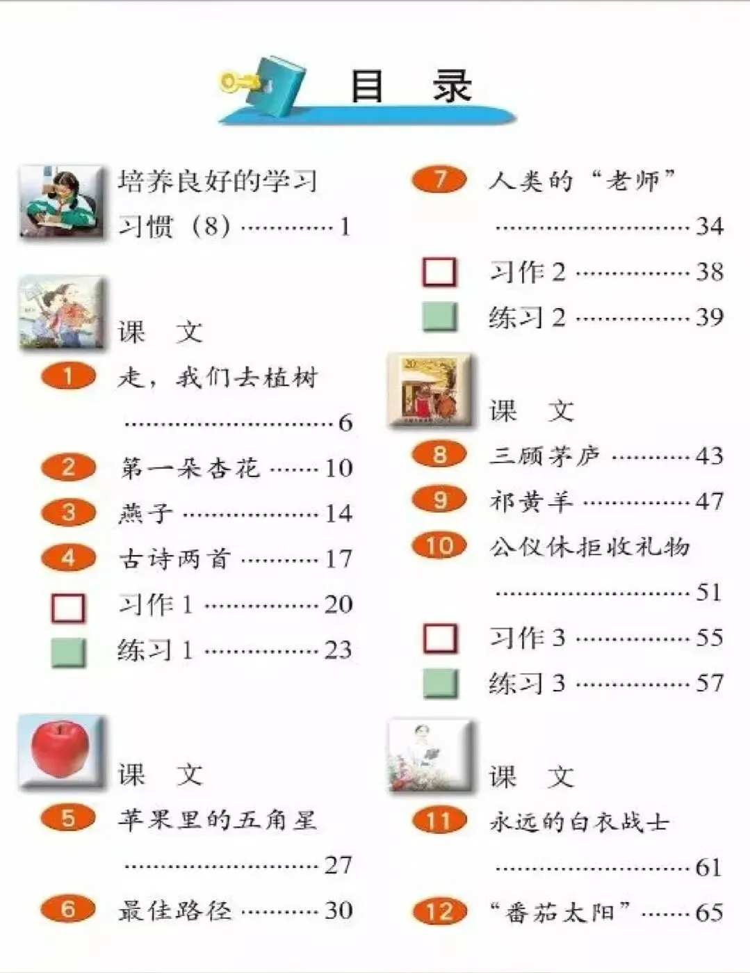 课文内容果然都是按着季节时序编排的,满满都是用心。
