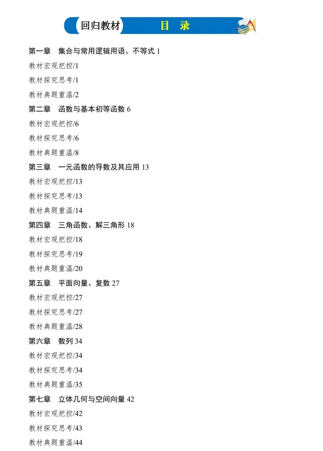 今日分享:学军中学+合肥一中高中数学回归教材