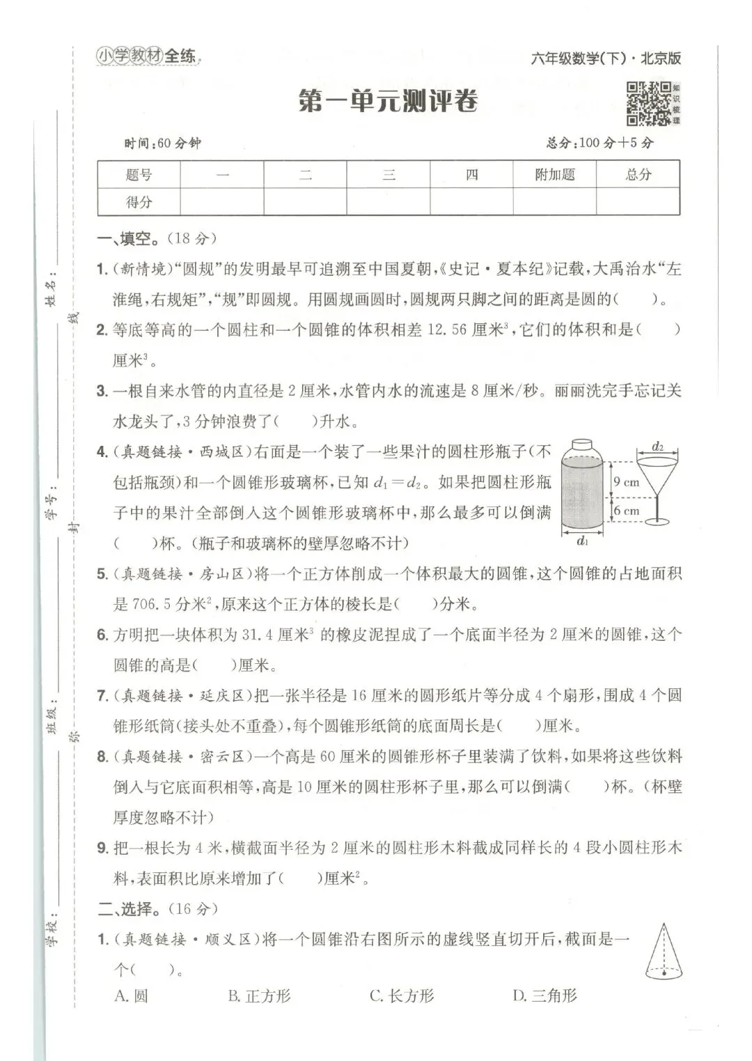 薛金星小学教材全练测评卷-北京版数学46年级下册,链接:https://pan.quark.cn/s/18484e81cd74
