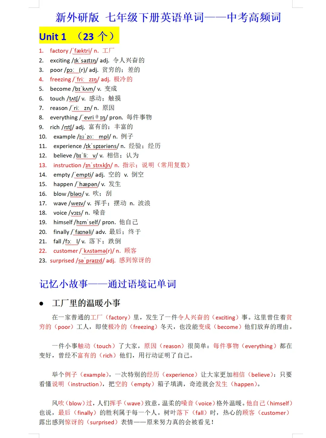>2026春新教材外研版初中英语七年级英语下册电子课本+单词表知识点汇总解析