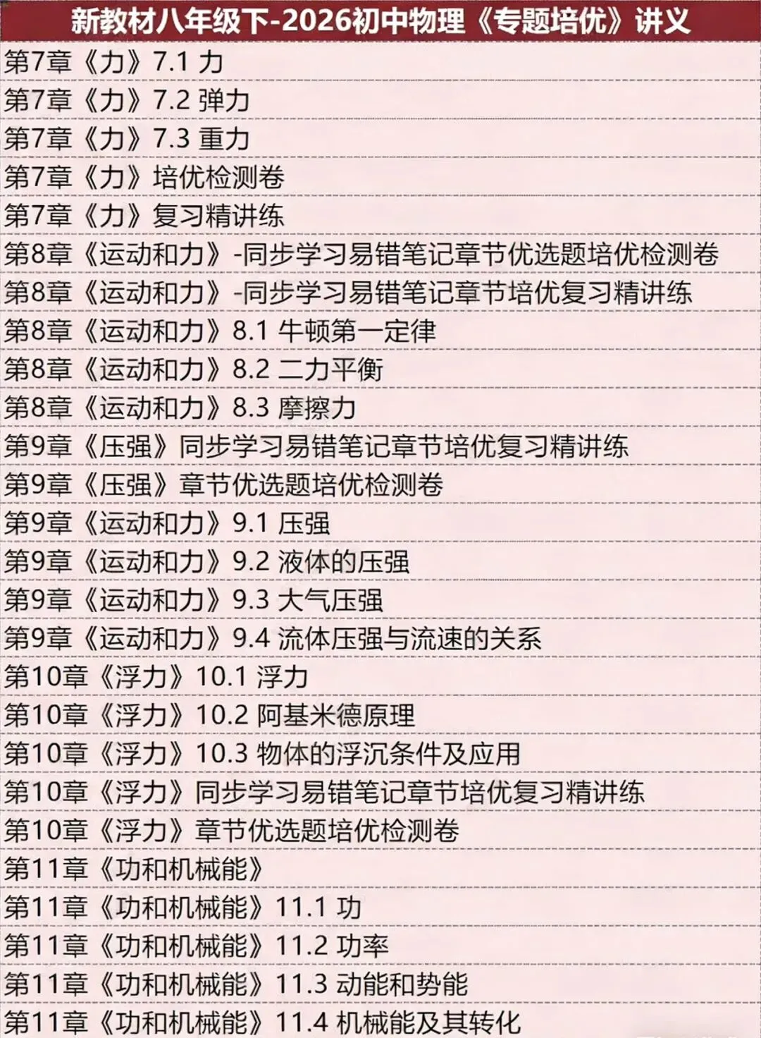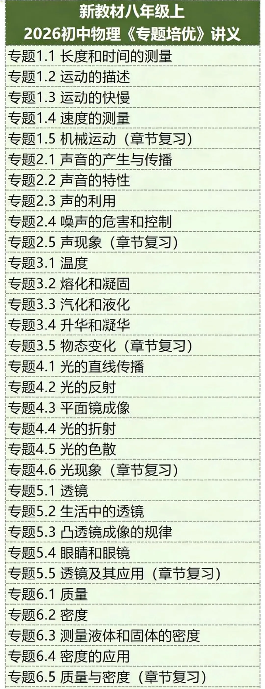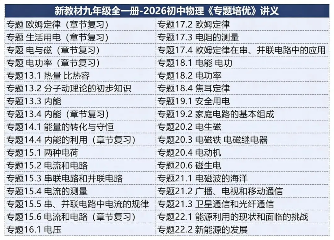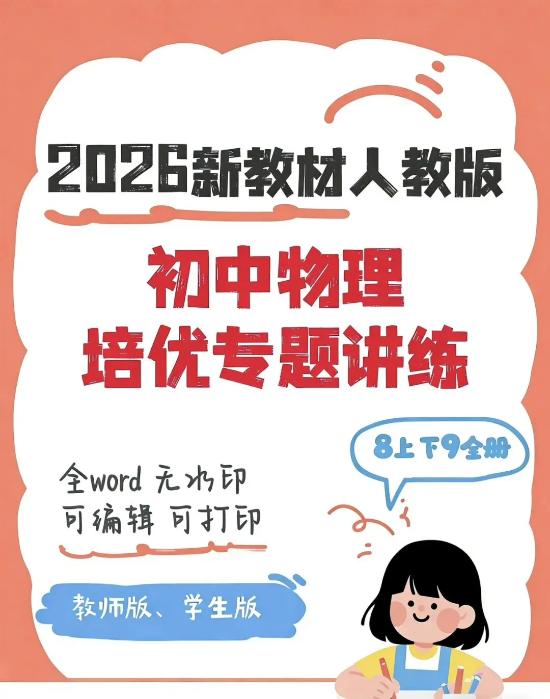 2026新教材人教版初中物理培优专题讲练,8年级上下册+9年级全册,全word无水印,可编辑可打印,教师版❗学生版齐全。皆为新改版教材。