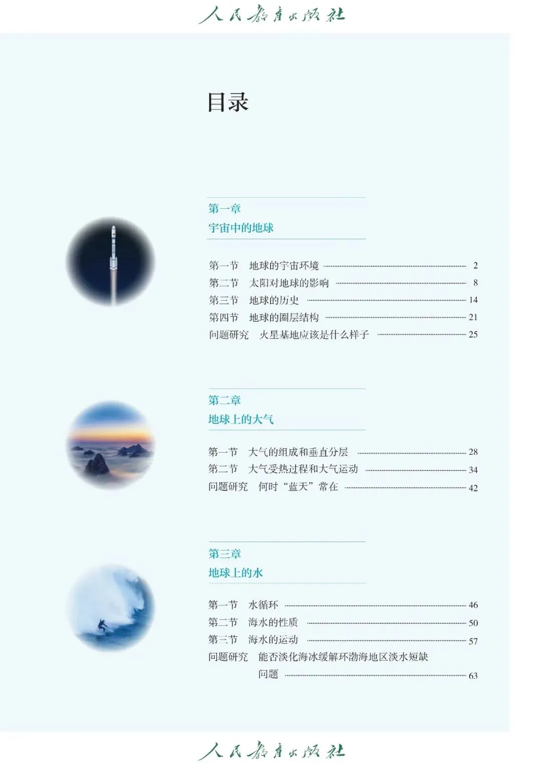 【3】第三章 地球上的水:主要内容包含课文《水循环》《海水的性质》《海水的运动》,核心内容有水循环类型、环节及地理意义、海水温度、盐度、密度的分布规律及影响因素、海浪、潮汐、洋流的形成及影响