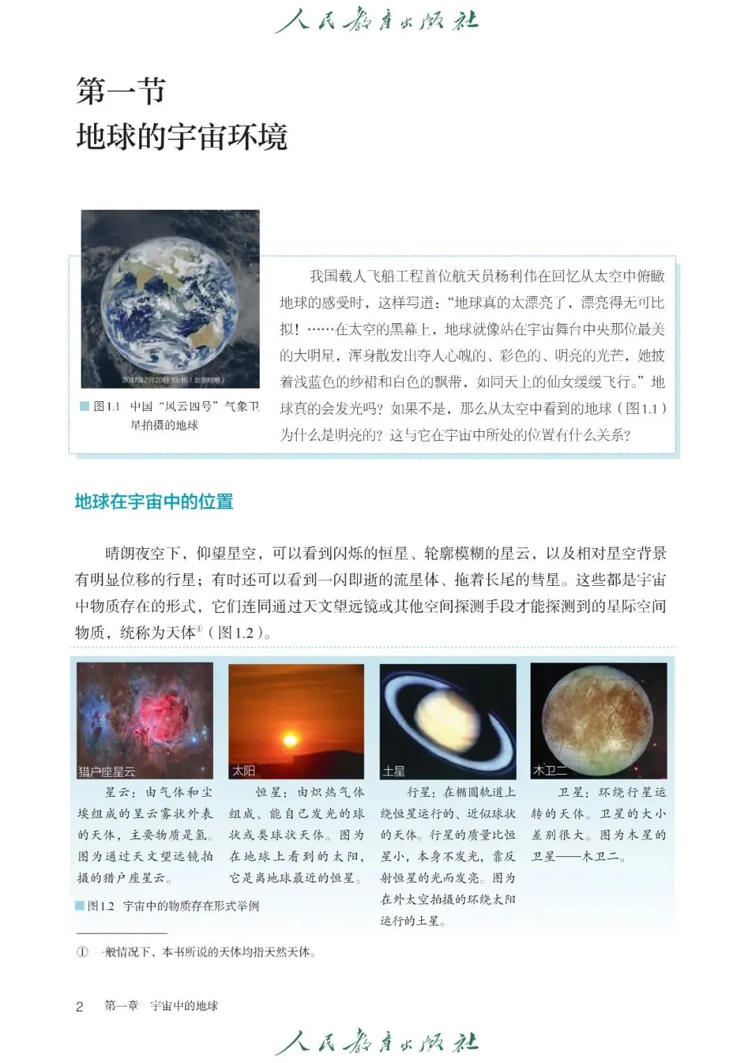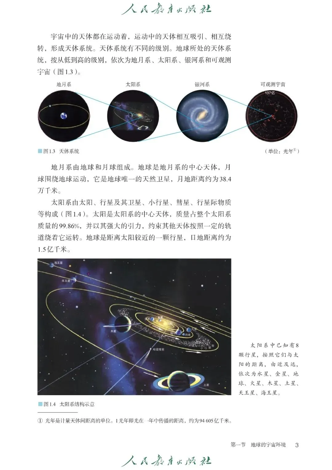 【1】第一章 宇宙中的地球:主要内容包含课文《地球的宇宙环境》《太阳对地球的影响》《地球的历史》《地球的圈层结构》,核心内容有天体与天体系统、地球存在生命的条件、太阳辐射与太阳活动对地球的影响、地球演化历程与地质年代、地球内部与外部圈层结构及特点