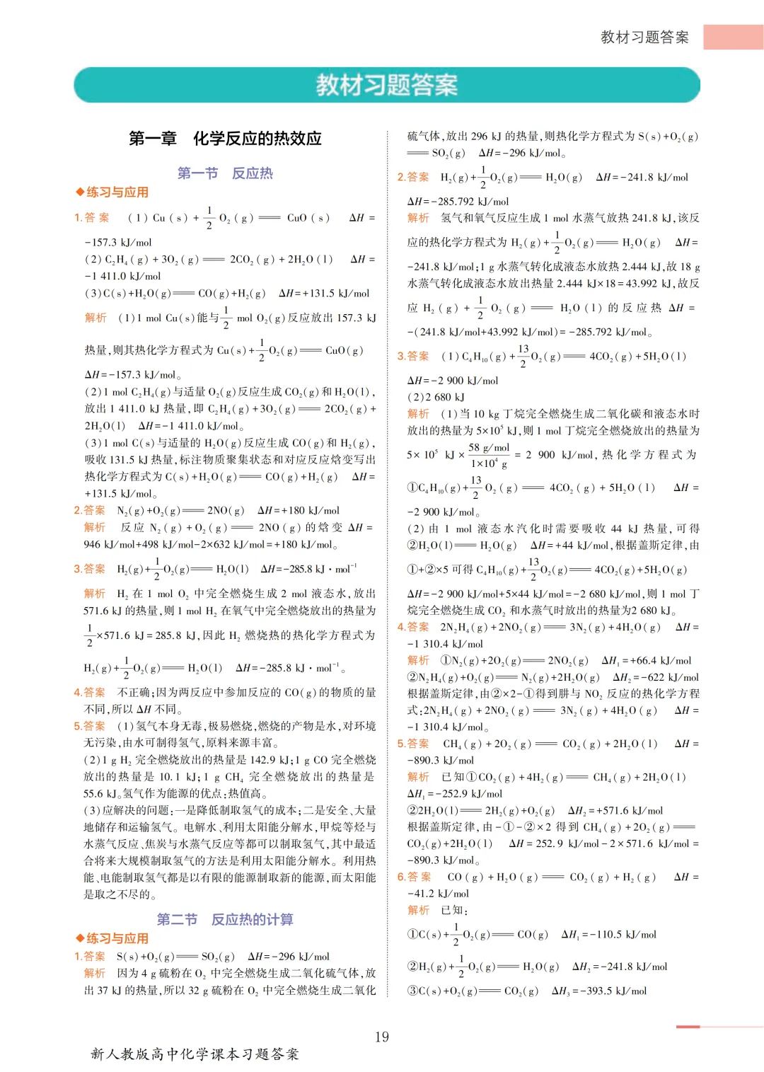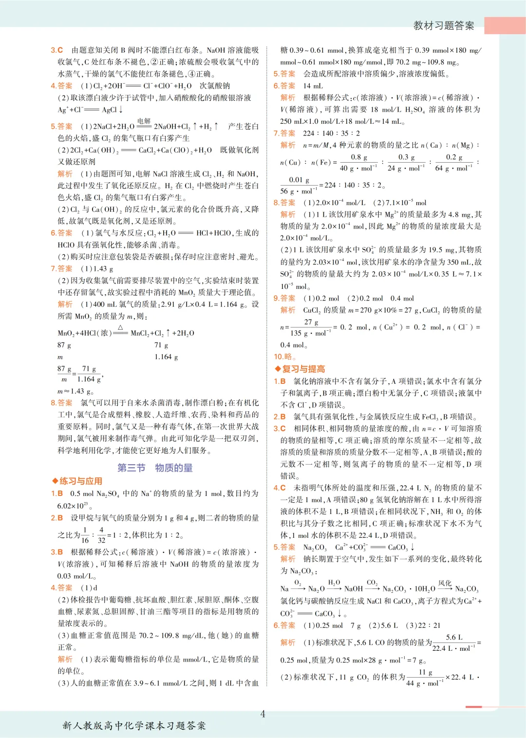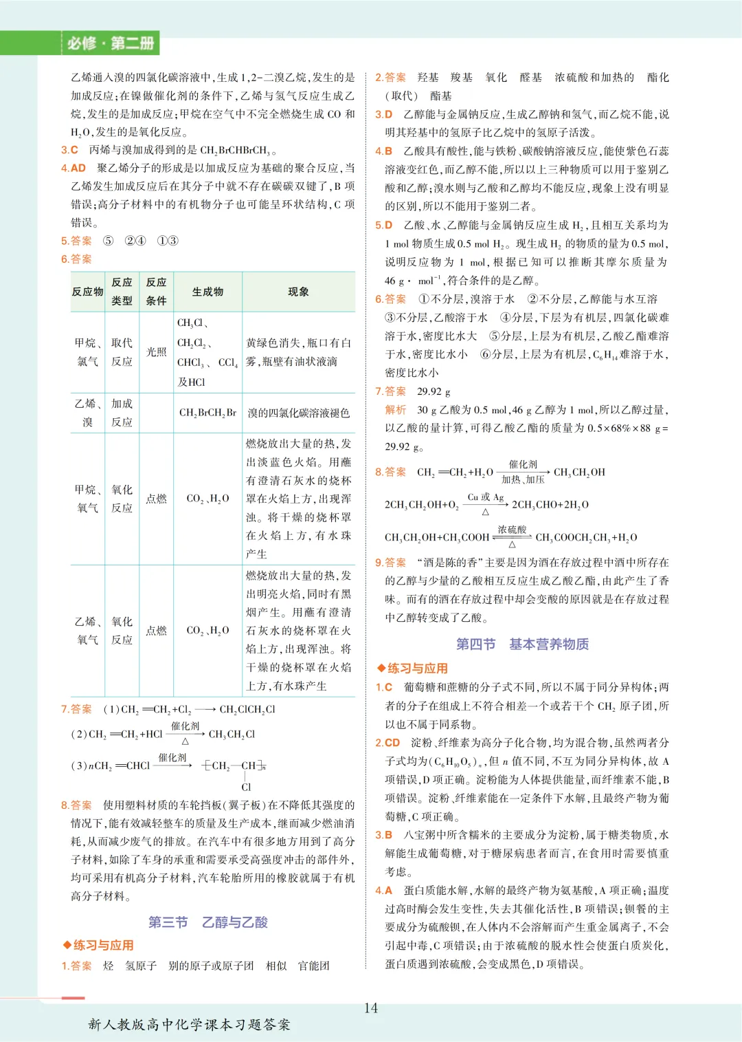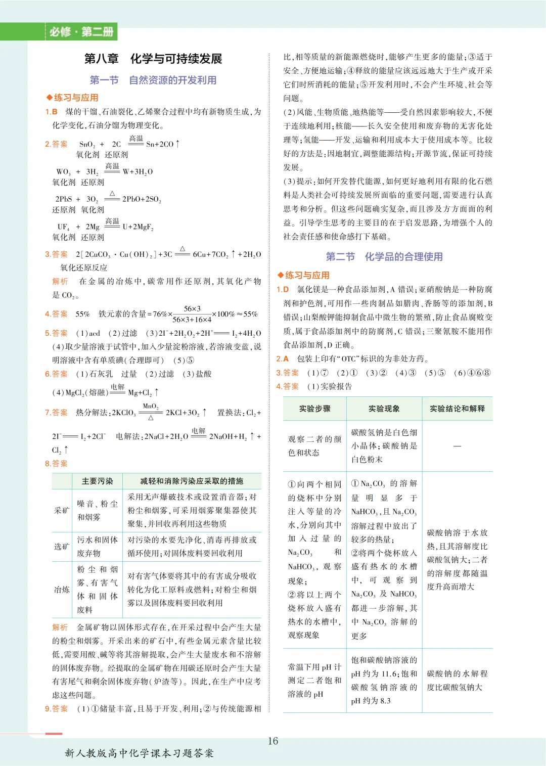 【收藏版】新人教版高中化学课本答案汇总