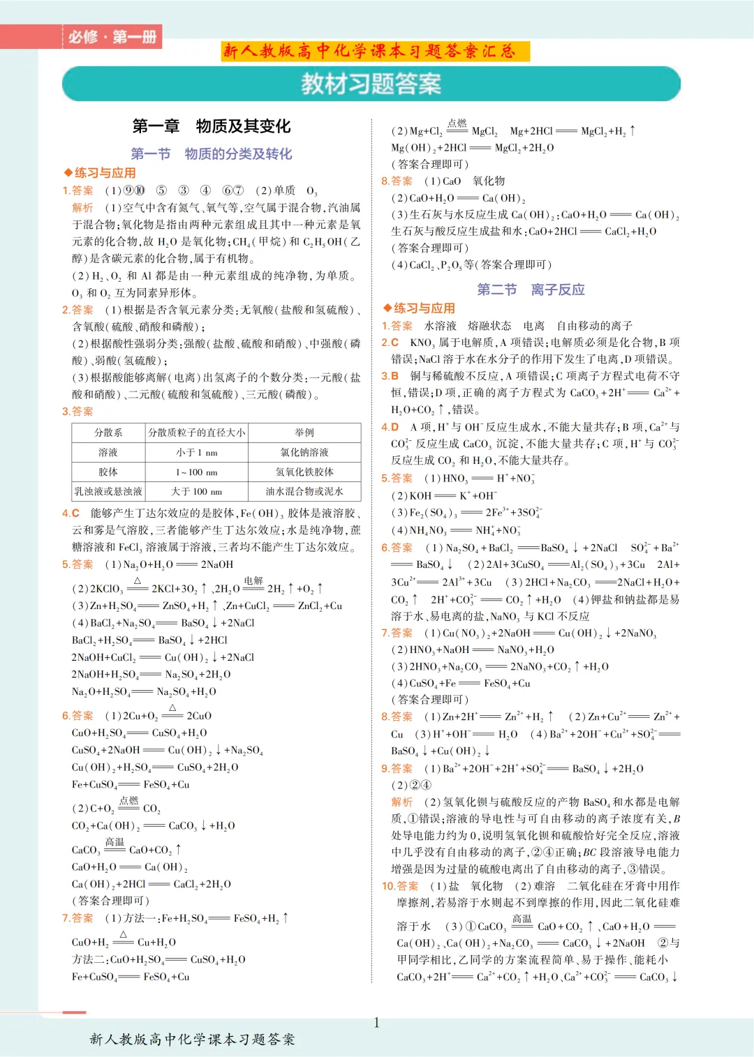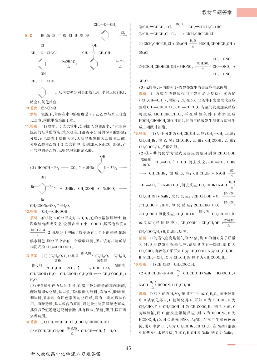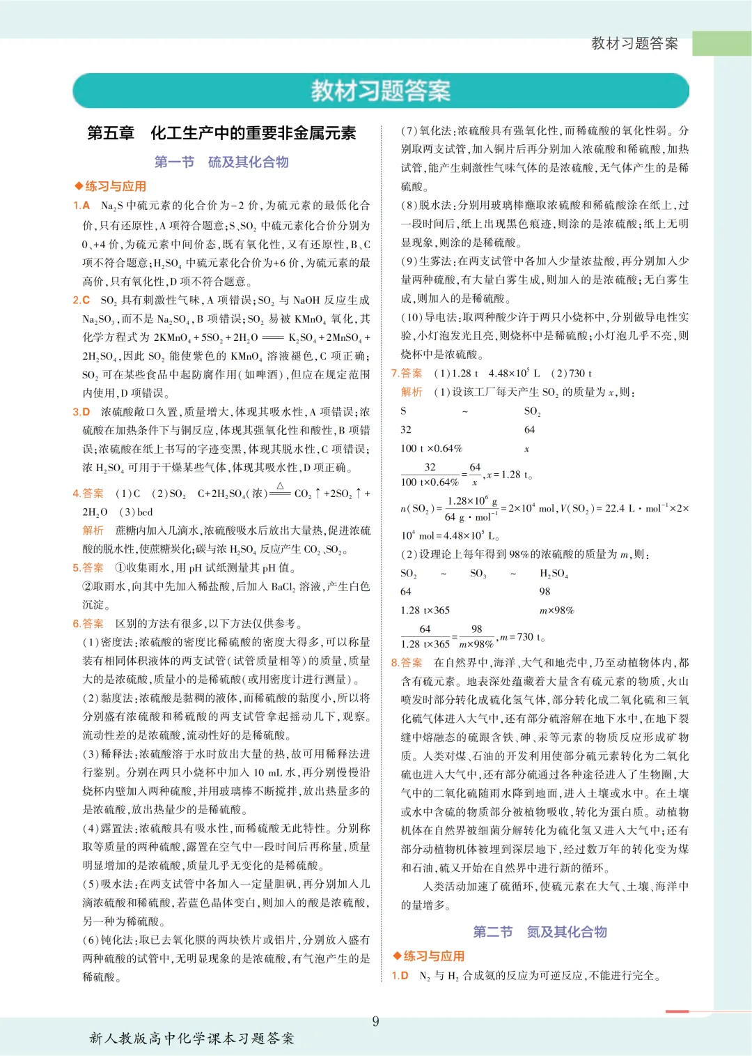 【收藏版】新人教版高中化学课本答案汇总