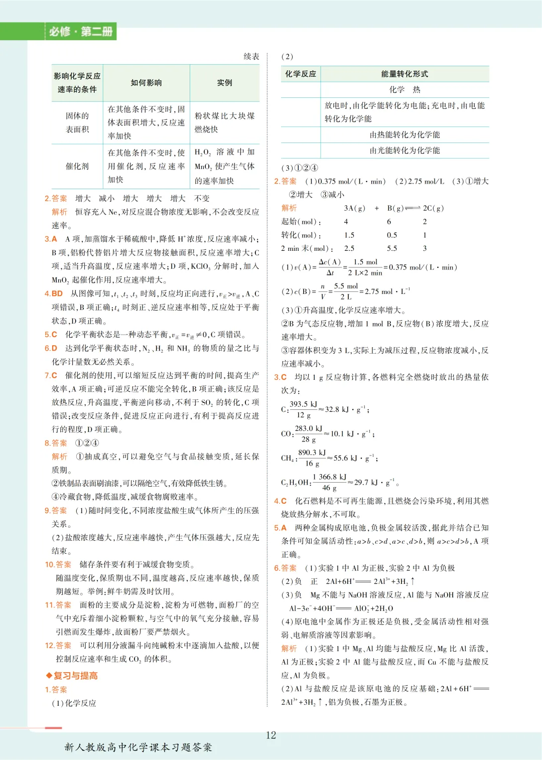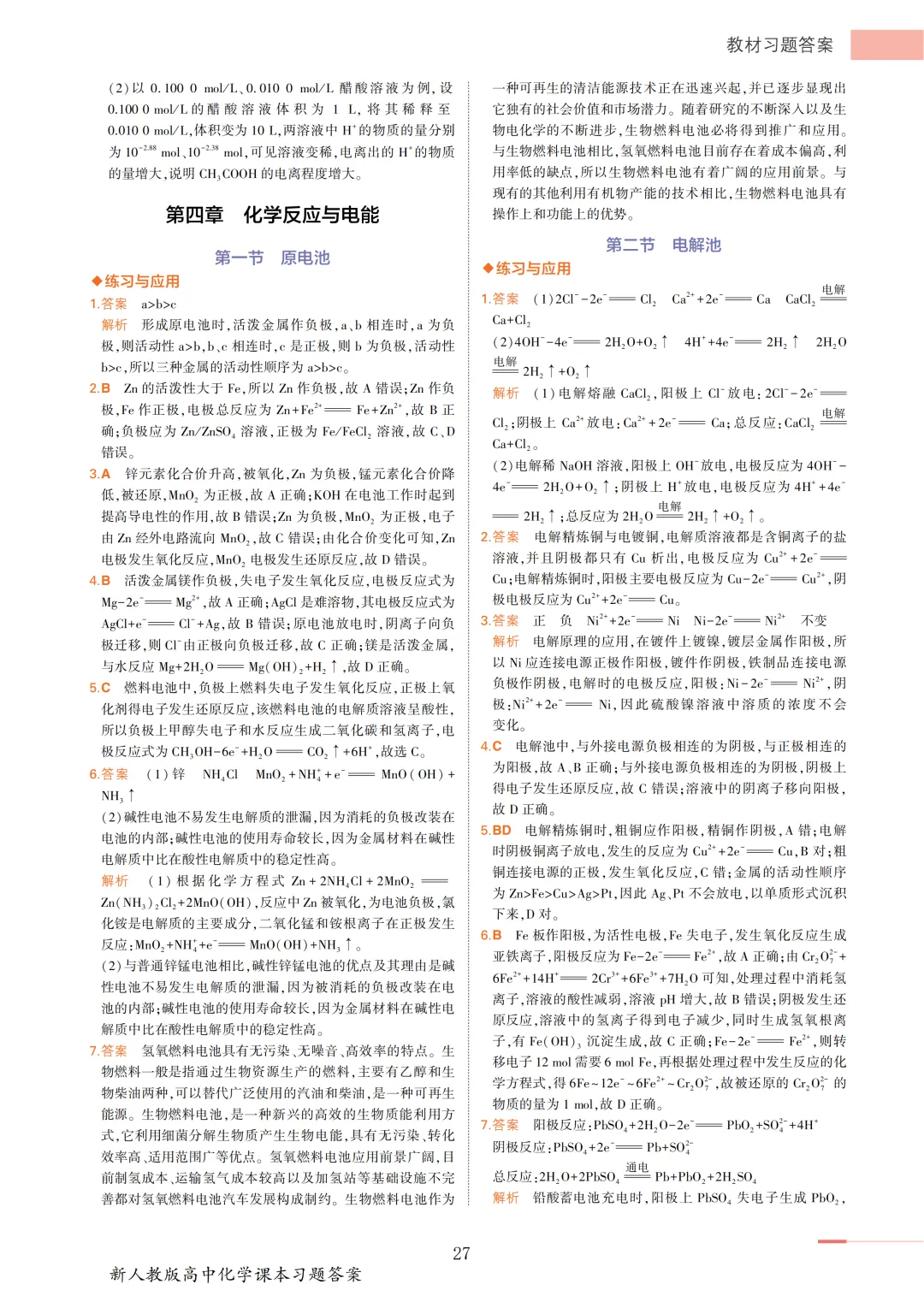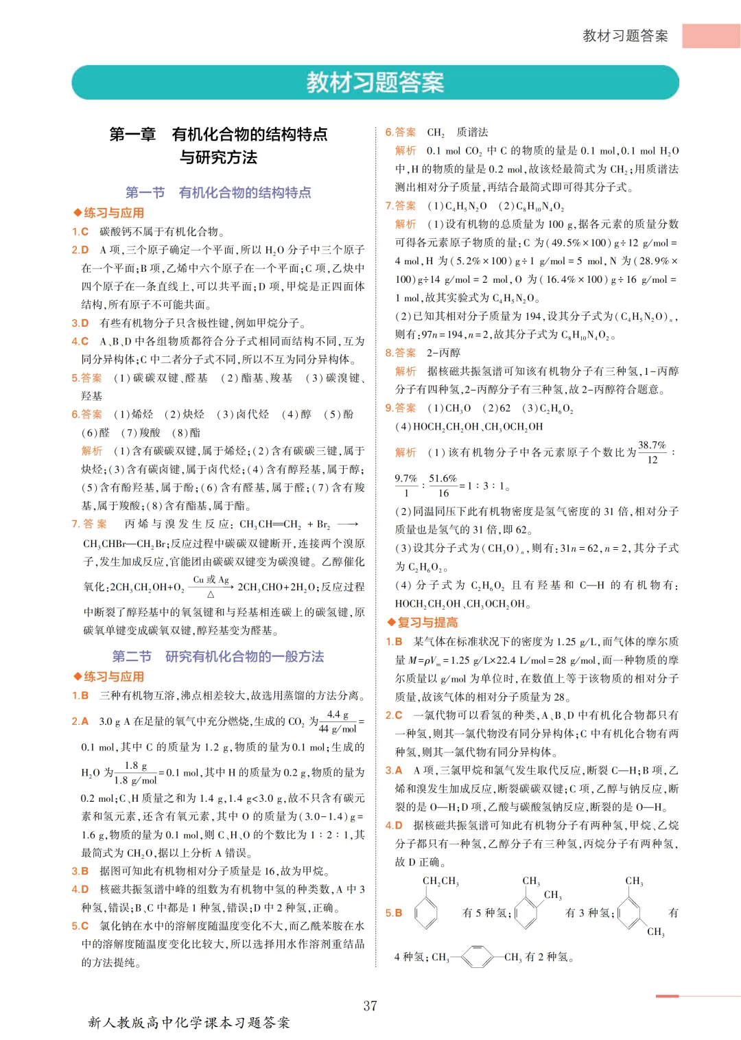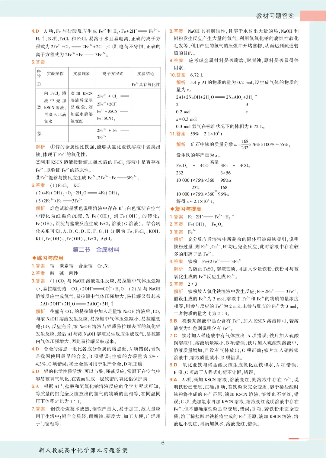 【收藏版】新人教版高中化学课本答案汇总