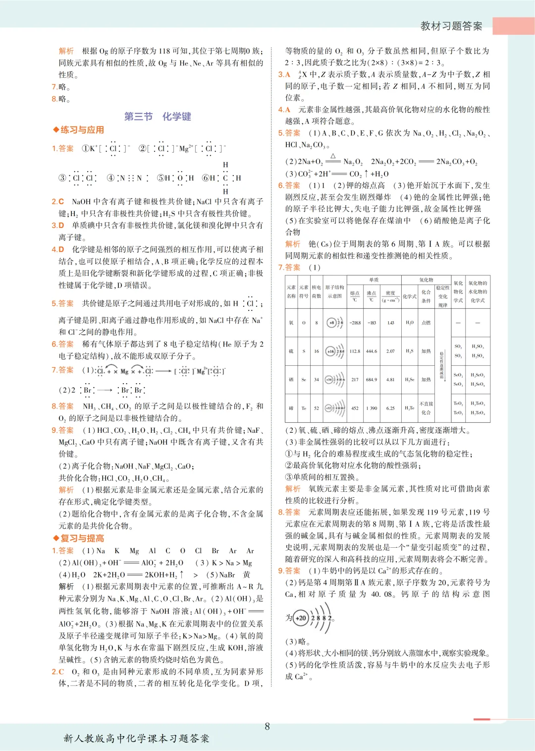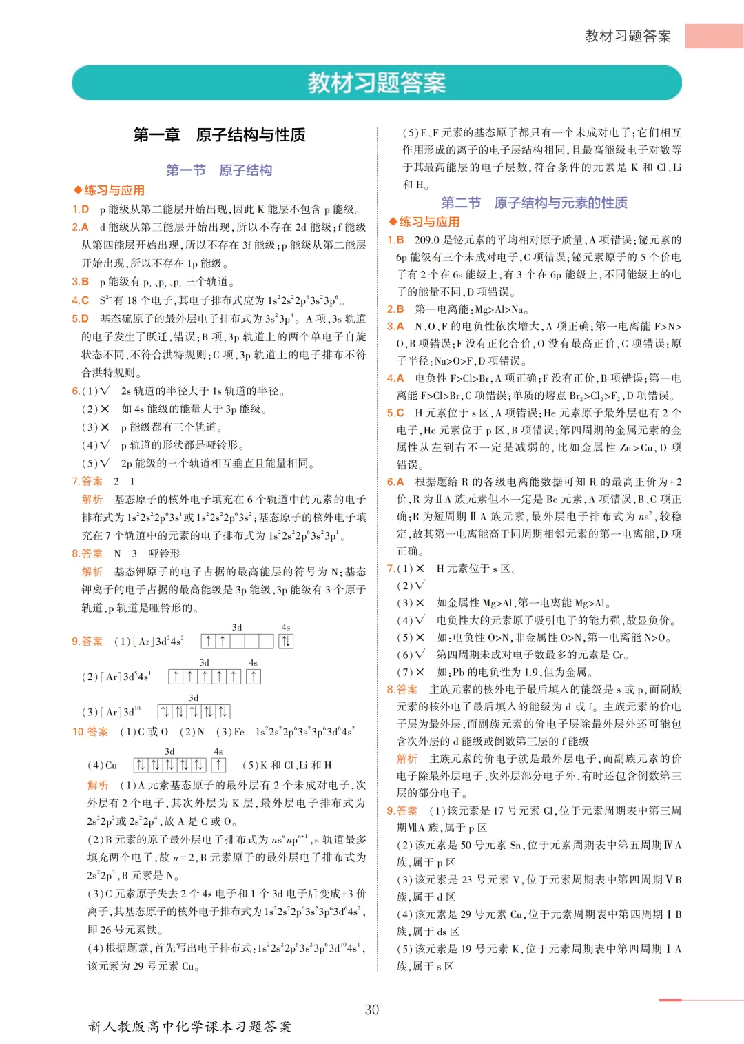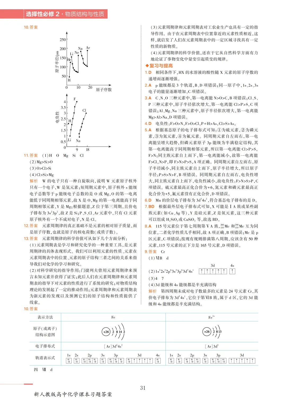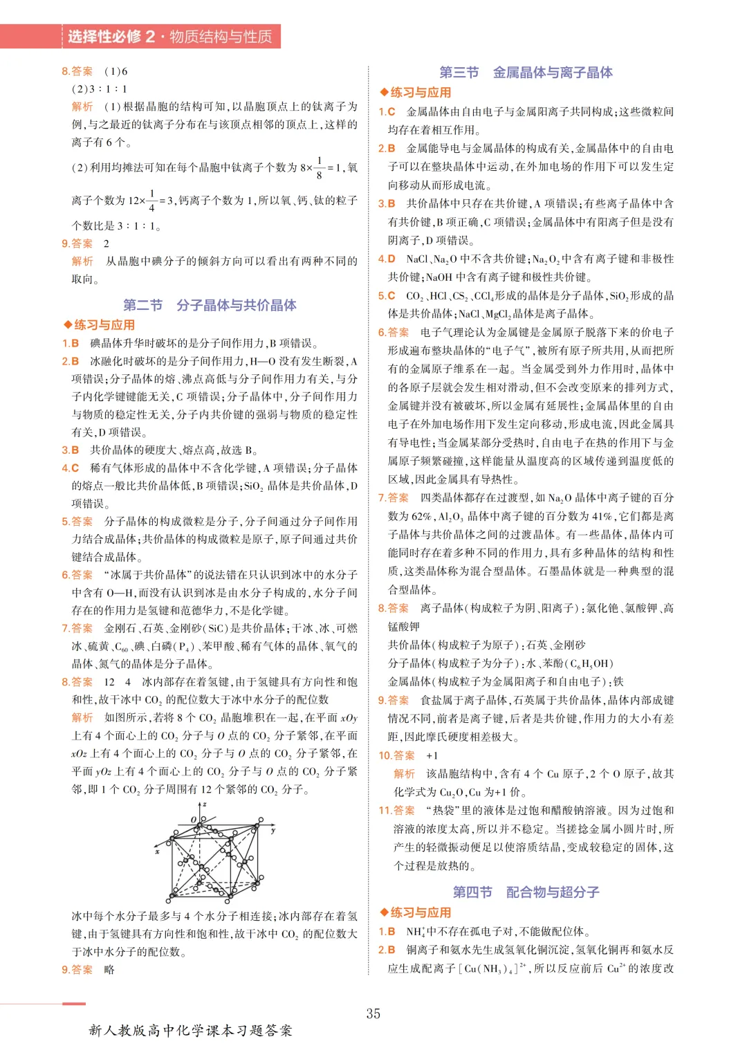 高中化学选必2教材答案(物质结构与性质)