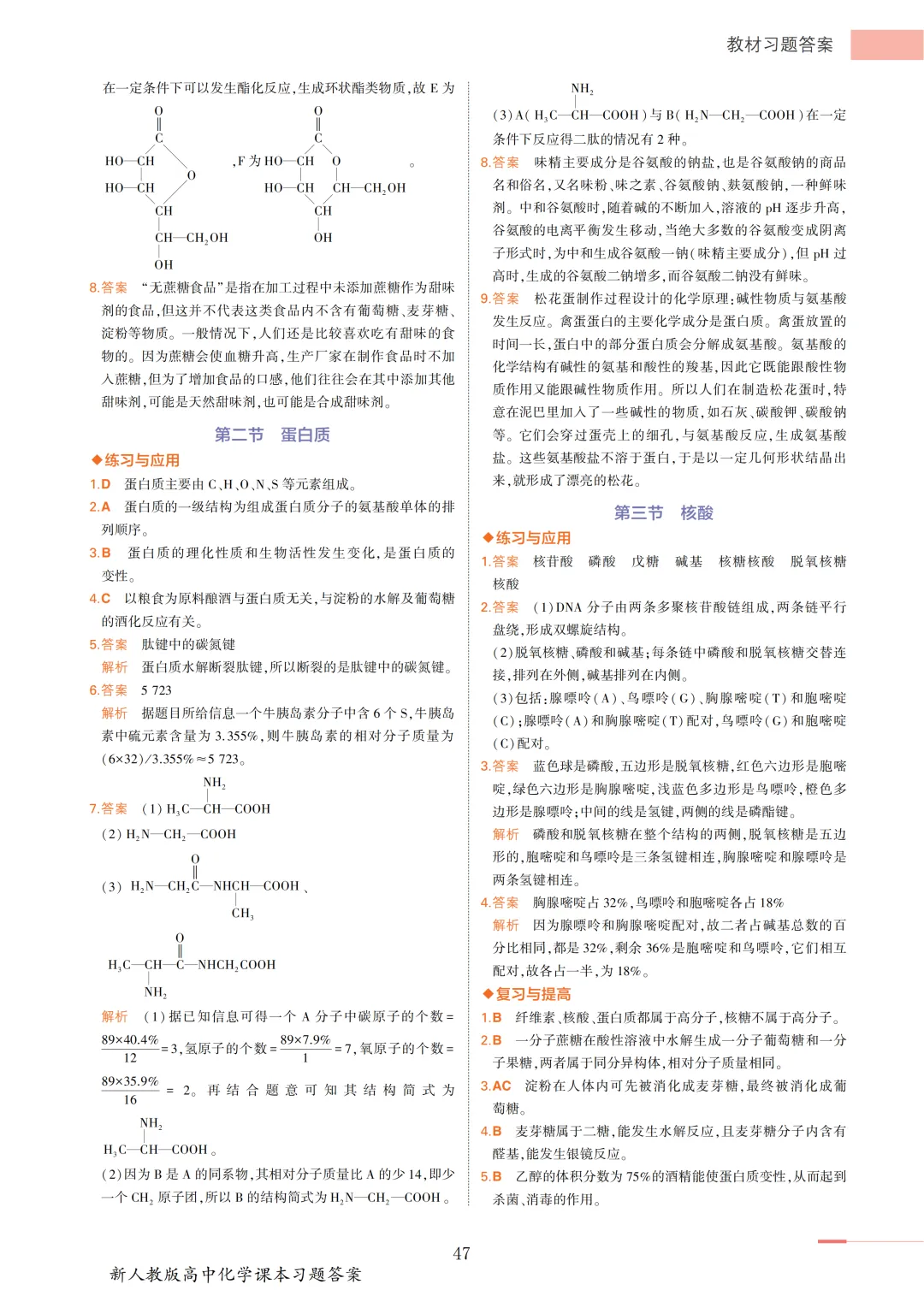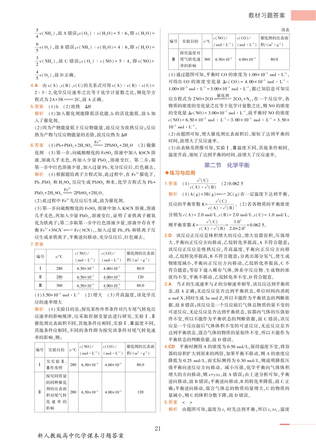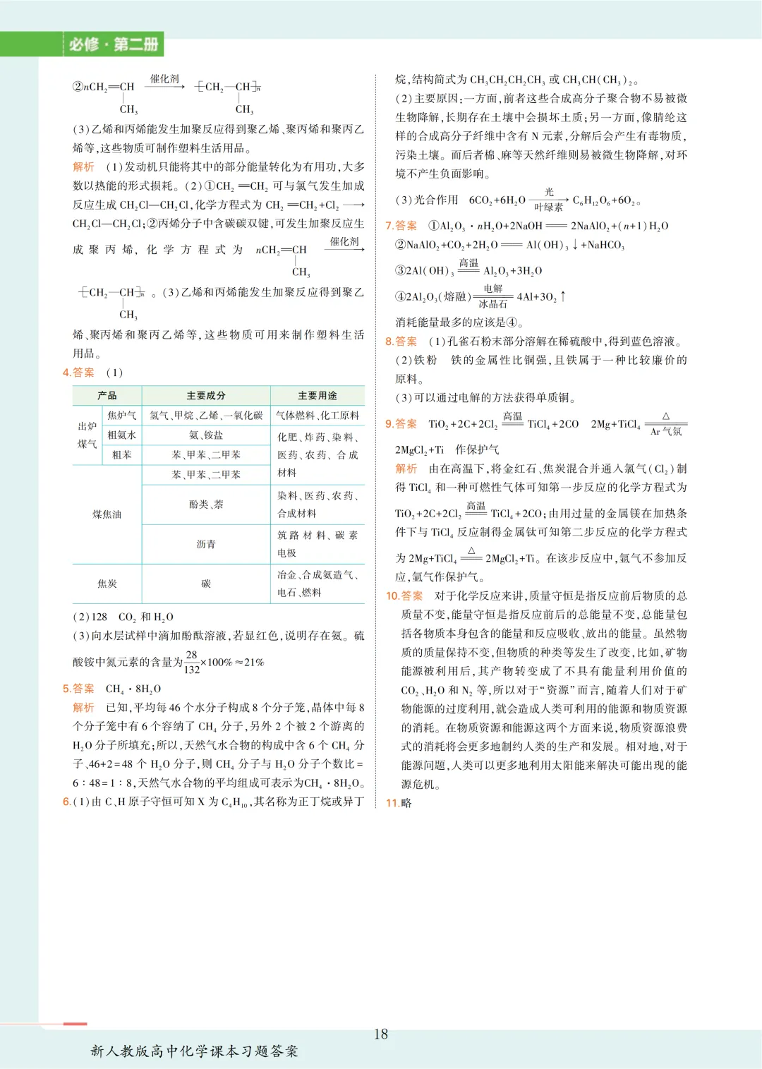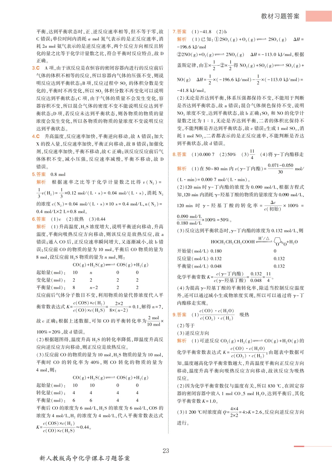 >【收藏版】新人教版高中化学课本答案汇总