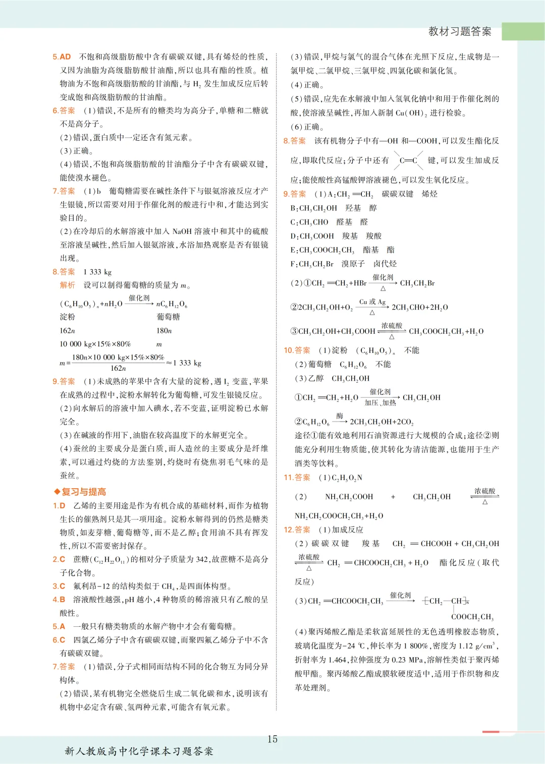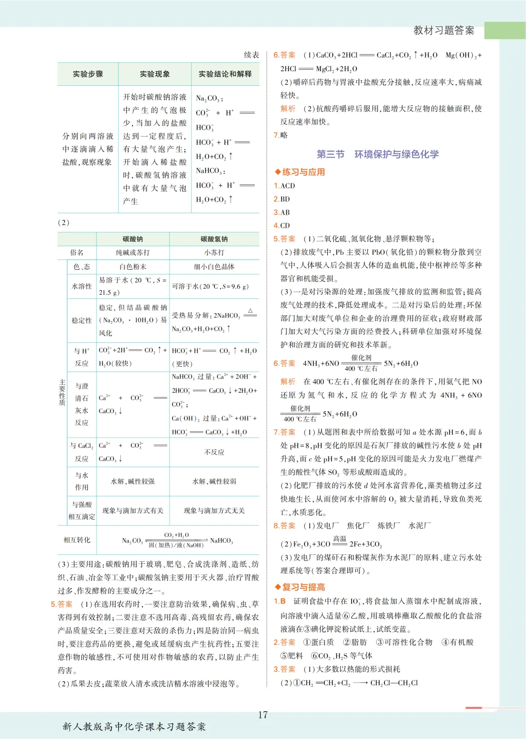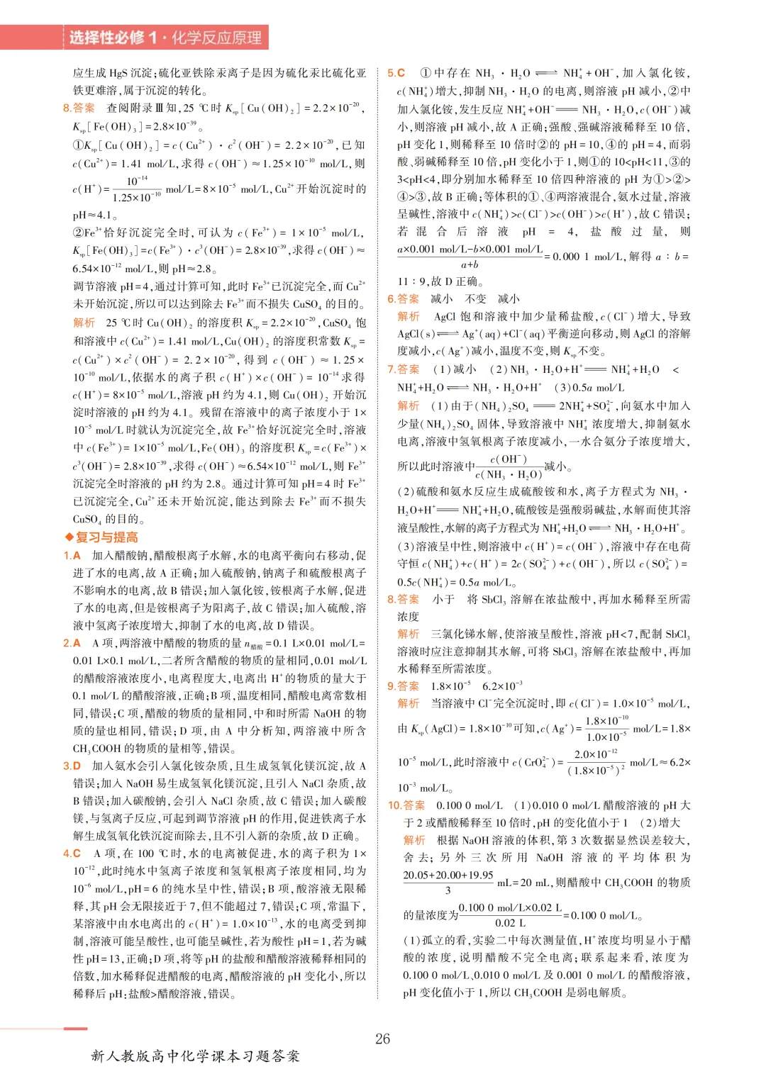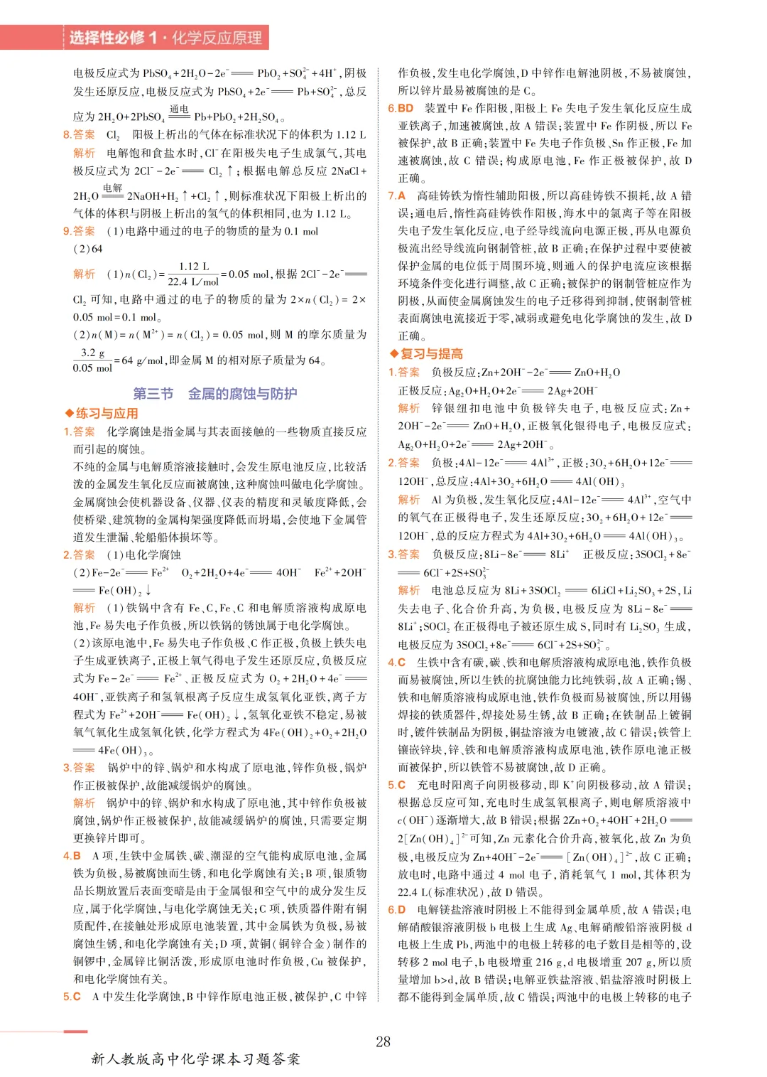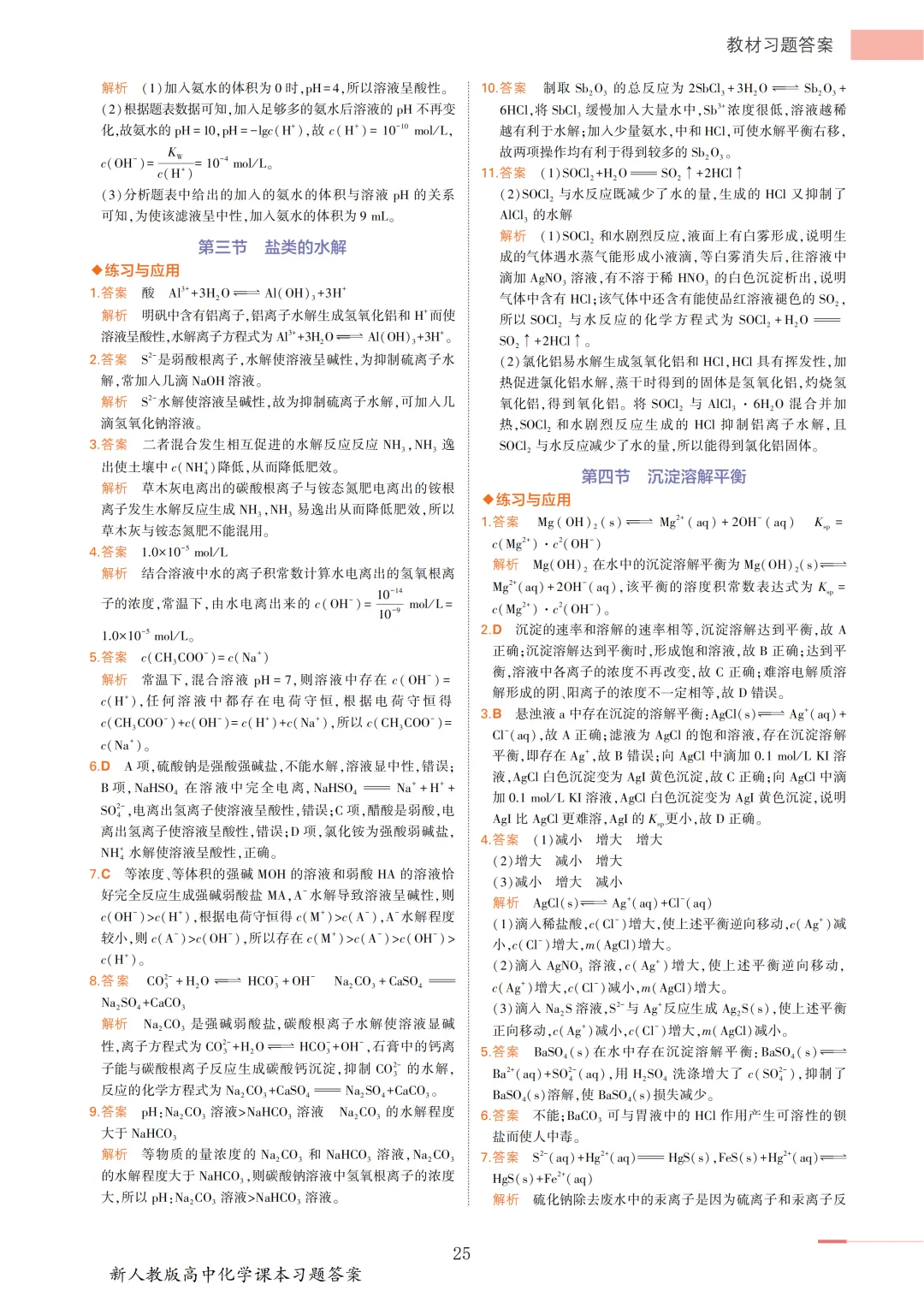 >【收藏版】新人教版高中化学课本答案汇总