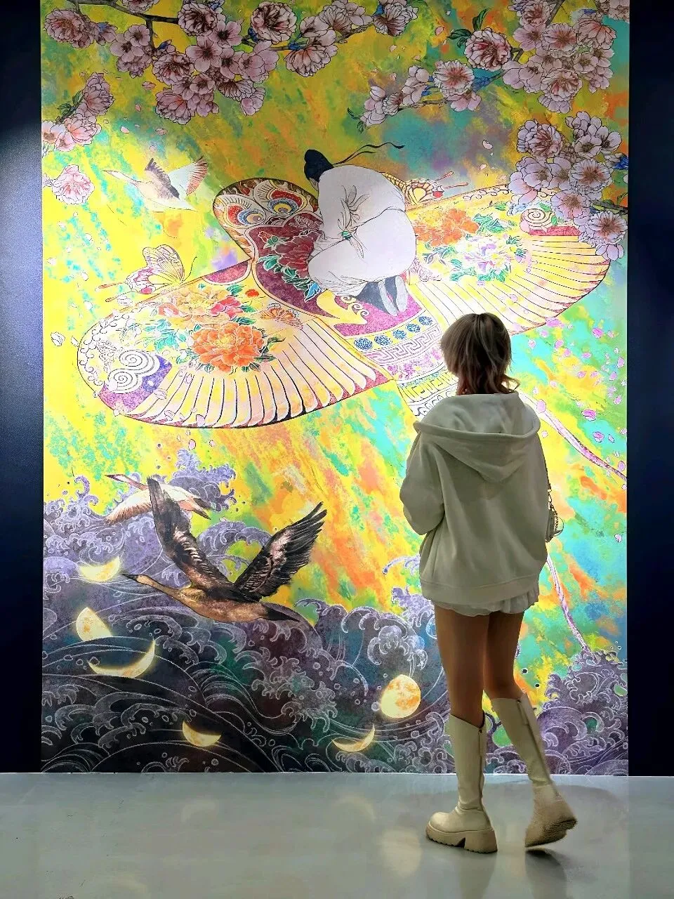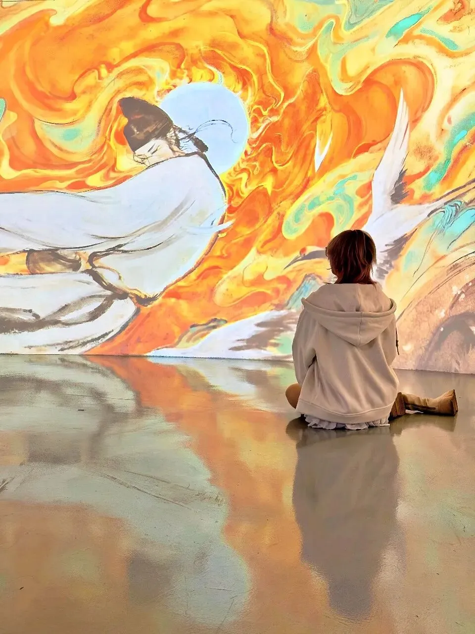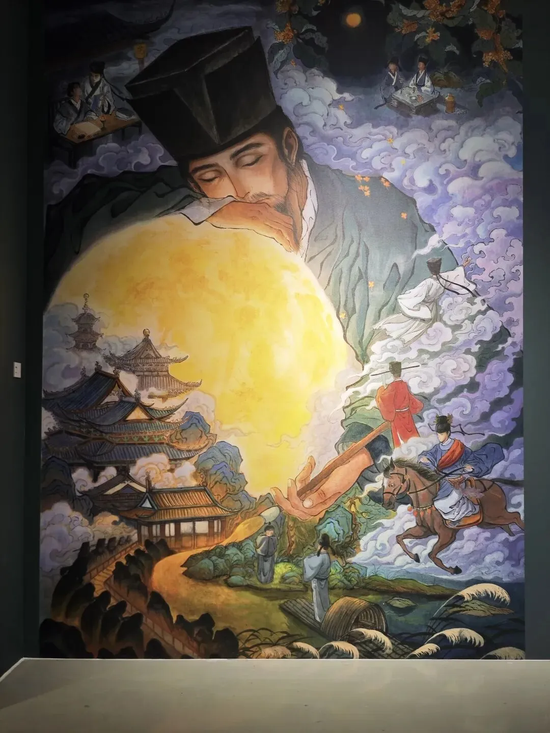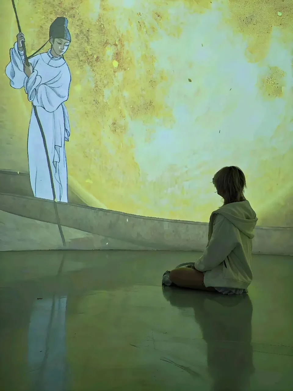 一开始听这展览的名字,以为是那种“把诗词做成网红墙”的无聊的学习展,结果整整在这个展厅里待了二个小时,上海k11举办的这场诗人展,整体体验下来,内容还挺丰富,布展也很大,每个转角的遇见都像在翻开一本会动的语文课本👇🏻入口处的《春江花月夜》装置直接暴击。巨大的圆月搁在小船上,脚下的“河水”是镜面材质,灯光一打,波光粼粼的。张若虚那首诗我上学时背得头疼,但站这儿突然懂了“滟滟随波千万里”,原来不是夸张。展览按诗人性格和人生轨迹划分了九个展区,每个区域都是独特的设计:✅️ 李白的“梦游天姥吟留别”区域,用画还原“须行即骑访名山”的洒脱感,视觉上不算华丽,但那种不羁的气息是能感受到的。✅️杜甫的区域色调暗沉,画里反复出现沙鸥的意象,对应那句“飘飘何所似,天地一沙鸥”。✅️白居易的“琵琶行”区域,做了江夜听琵琶的场景,灯光昏暗,营造出那种“同是天涯沦落人”的氛围。✅️苏轼的区有巧思,一轮明月,一个人,一杯酒,《水调歌头》被画成了月亮的阴晴圆缺,苏轼在每一轮月亮下都是不同的姿态:有时仰头,有时低头,有时举杯。✅️李清照的区域是最轻盈的,明亮的色调,投影里有秋千、荷花、溪亭日暮,还原的是《如梦令》里那个“争渡,争渡,惊起一滩鸥鹭”的少女时光。✅️辛弃疾的区域则完全不同,用了大面积的红色和山河画,呼应“何处望神州?满眼风光北固楼”的壮阔与遗憾。✅️陶渊明展区是田园风的投影,有菊花的影子和土地的颜色,简单得像他的诗。✅️柳永展区是市井画卷,画上流动着汴京街市的热闹,像古画活过来了。✅️林逋展区最有意思,画中梅花的光影飘下来,站在画前感觉自己被梅花包围了。展览里嵌了将近50首中小学课本里的诗词,不是单纯地抄在墙上,而是通过3D动画、光影装置让它们“动”起来。比如《静夜思》,你站在特定位置,真的有月光“洒”到脚边。比如《大林寺桃花》,投影动画里的的桃花会从含苞到盛开,循环往复。还有“数字诗人”的互动环节,屏幕里的诗人会像导览员一样跟你聊创作时的故事,虽然技术上不算多惊艳,但对小朋友来说确实比干看文字有意思。以前觉得李白是“诗仙”,高高在上,看完发现他也是个普通人,会郁闷,会不甘,会写诗骂人。以前觉得杜甫太苦了,背《春望》就头疼,看完“天地一沙鸥”的画,突然明白他写的不是惨,是真实。李清照不是只有“凄凄惨惨戚戚”,她也曾“争渡争渡”,也曾“和羞走”。诗词不是我们以前的考试题,而是这些古人活过的证据!地址:上海chi K11美术馆(黄浦区淮海中路300号K11购物艺术中心B3层)时间:10:00—20:00(19:30停止入场)
