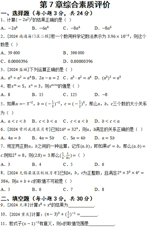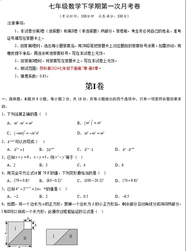 >【新教材】2026苏科版初中七年级数学下册 课件+单元测试(全套下载)可编辑打印 第2套