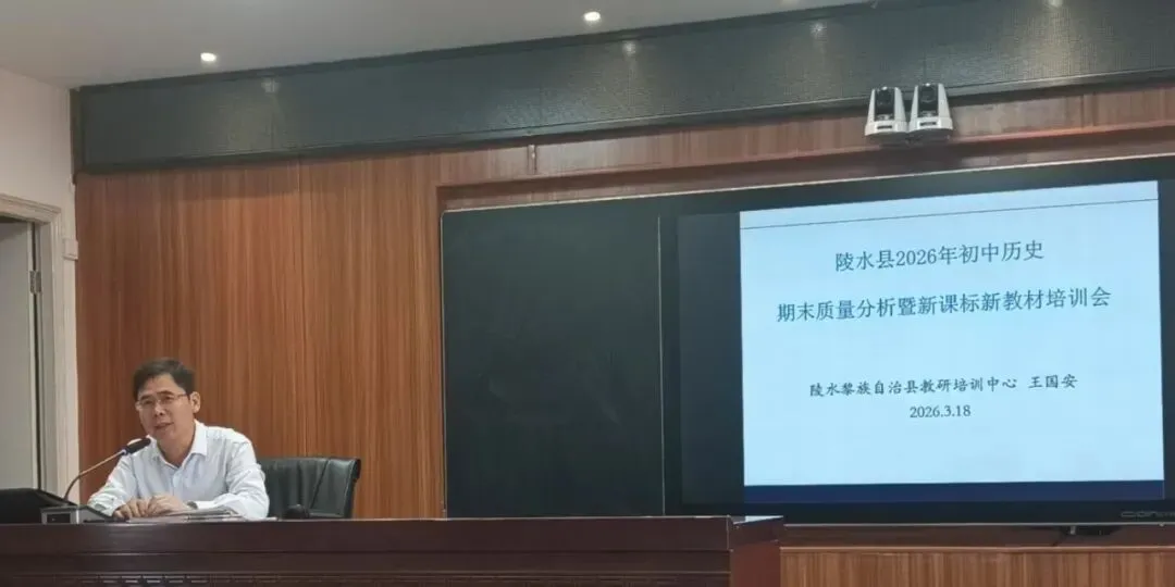 为精准总结上学期初中历史教学成效,破解教学痛点,推动新课标落地生根,提升全县初中历史教师专业素养和教学质量,2026年3月18日下午,县教研培训中心在陵水中学召开上学期初中历史学科期末教学质量分析暨新课标新教材培训会。县初中历史教研员王国安主持会议并作专题讲座。全县初中历史教师70多人参加培训会。