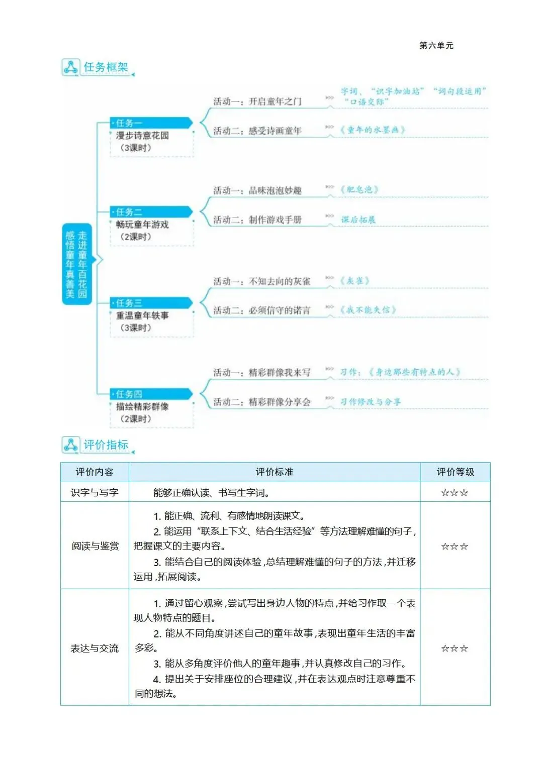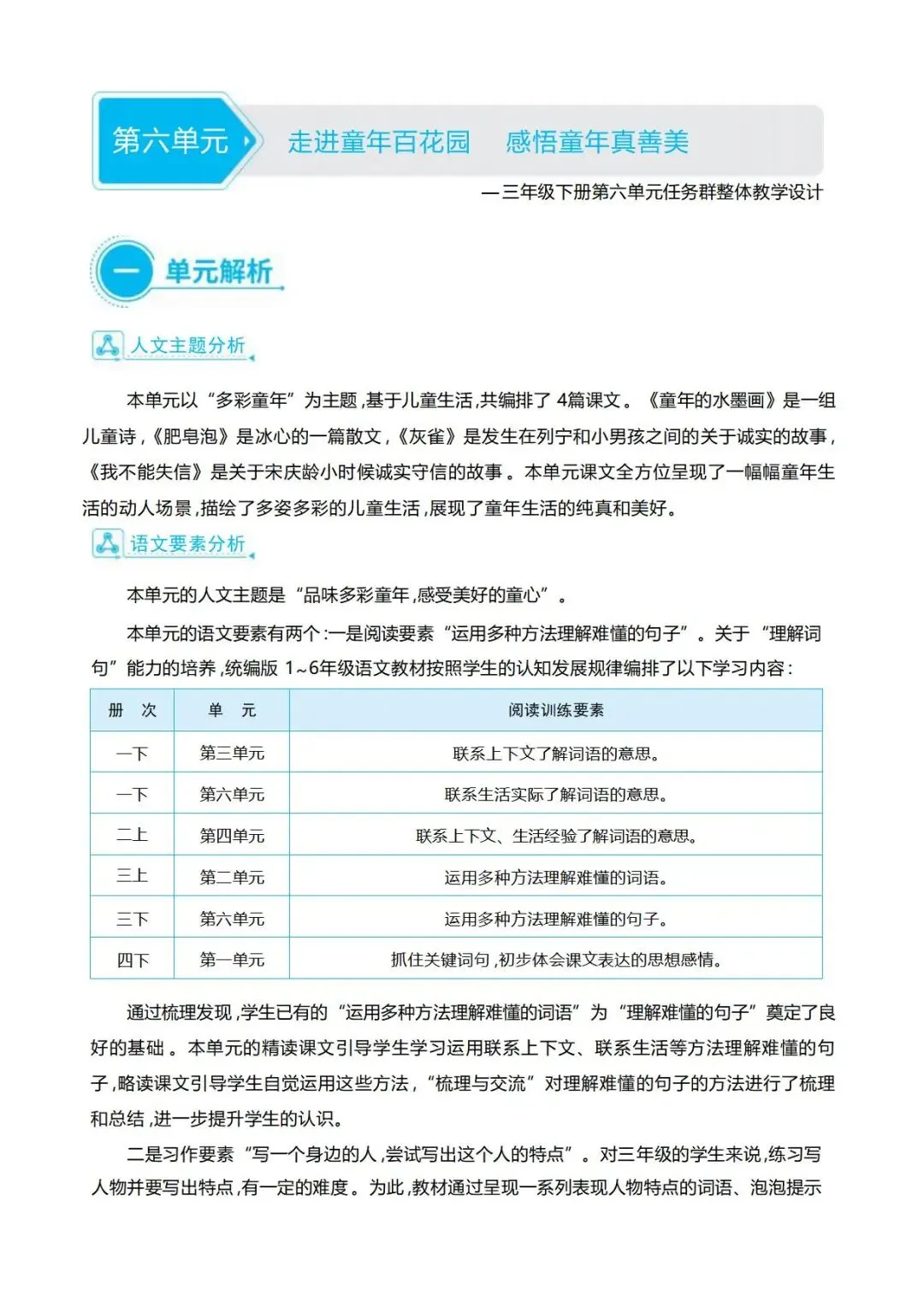 当前位置:首页>小学教材>【2026新教材】小学语文三年级下册大单元教学第六单元:走进童年百花园,感悟童年真善美(框架版)