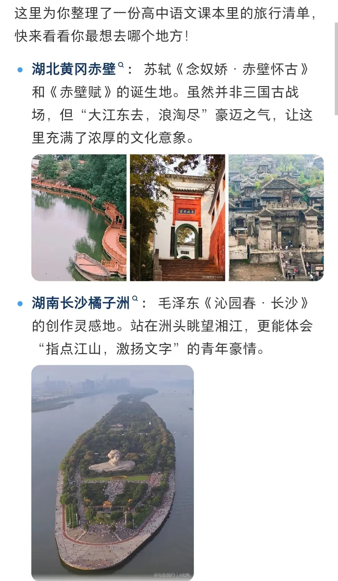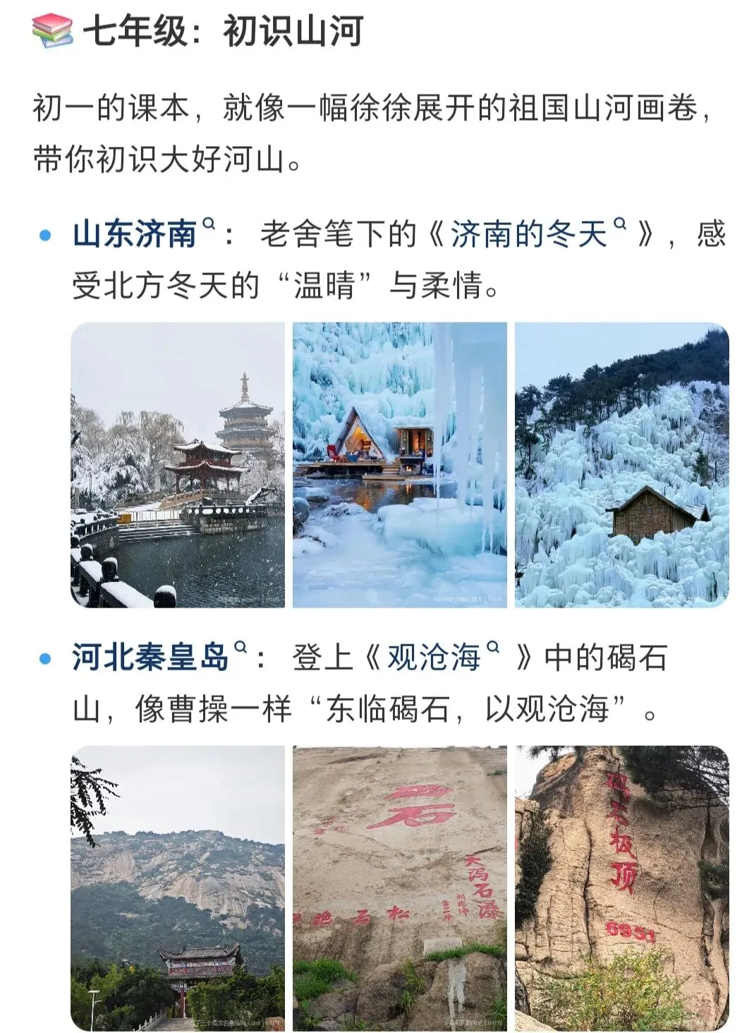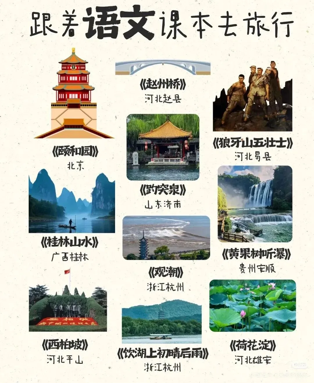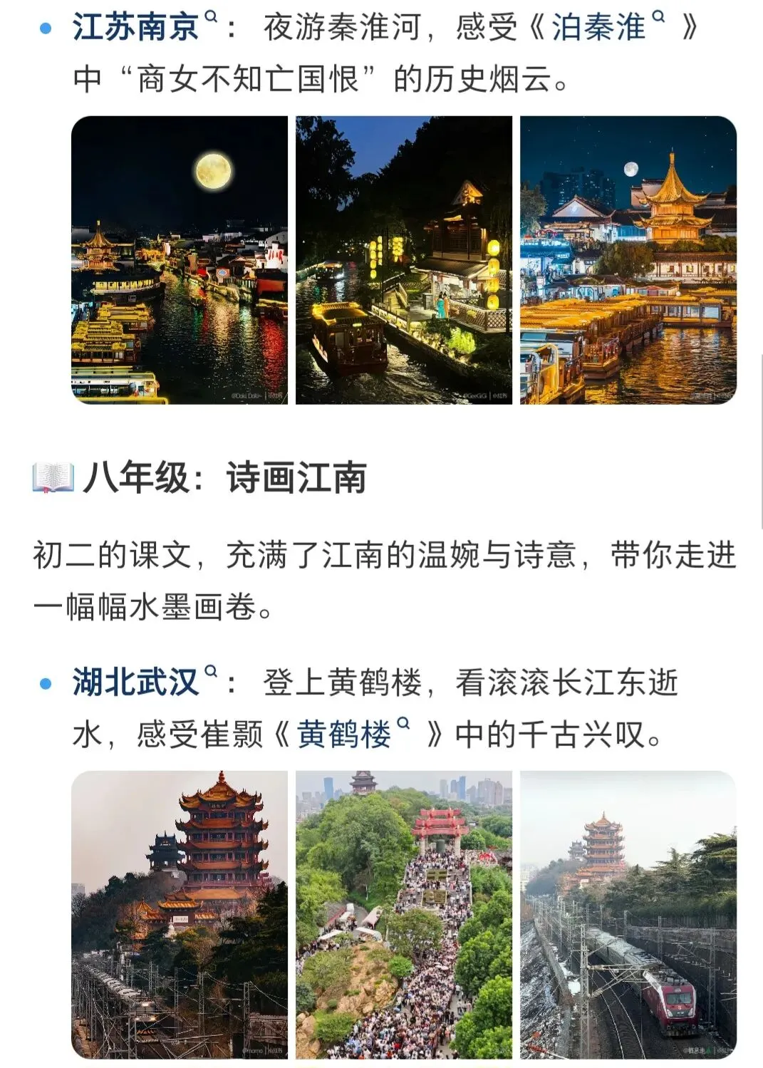 - 小学:景点+简单写景,以名胜为主