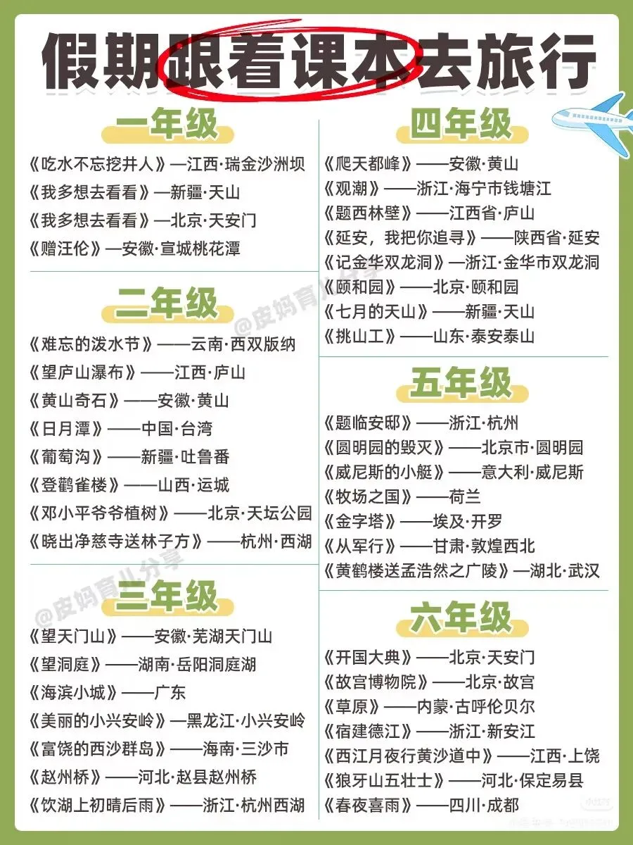 按统编版(部编版)小学语文,按年级整理课本里的地理地点(国内为主):