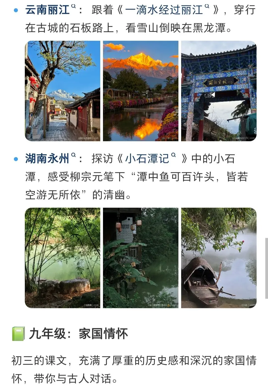 初中、高中语文课本里地理相关文章非常多,比小学更系统、更偏深度写景/游记/地理文化。