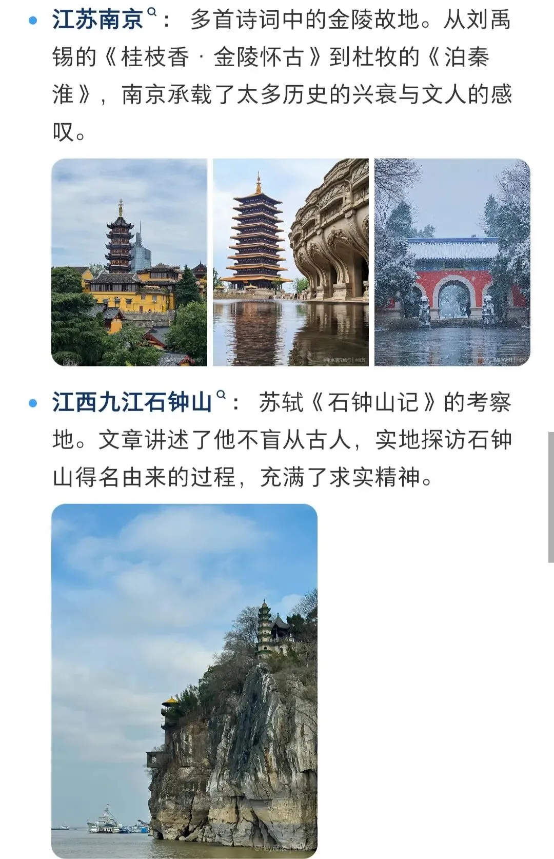 - 江西·庐山(《石钟山记》苏轼)