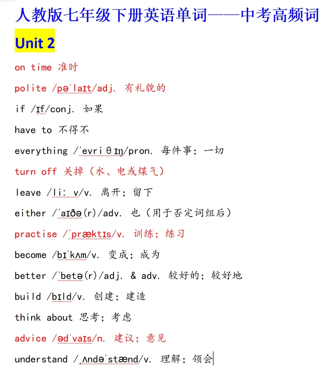2026新教材人教版初中英语七年级下册单词表解析+七下单词默写表打印版(免费下载)