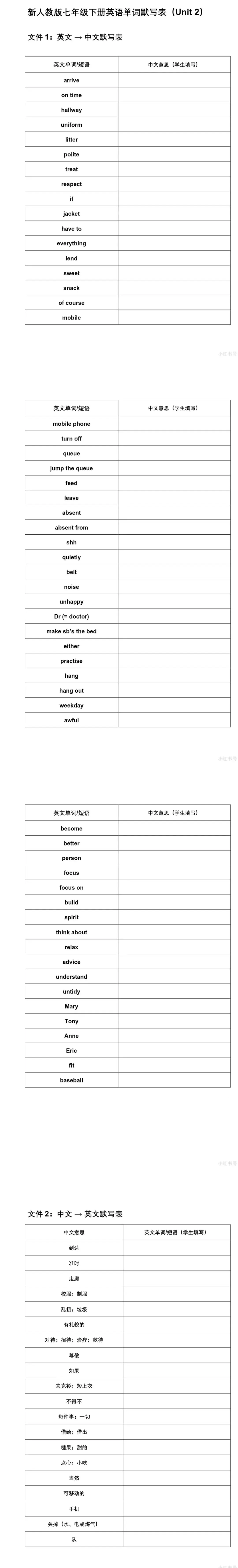 >2026新教材人教版初中英语七年级下册单词表解析+七下单词默写表打印版(免费下载)