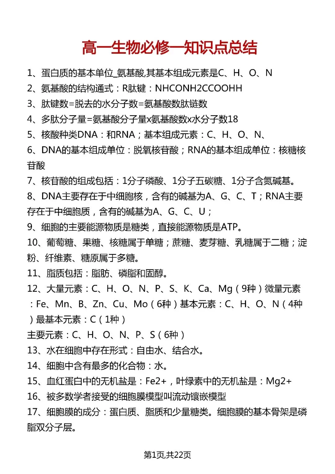 【高中生物知识点大全】高中语文必修一课本同步知识点大全(可免费下载打印)