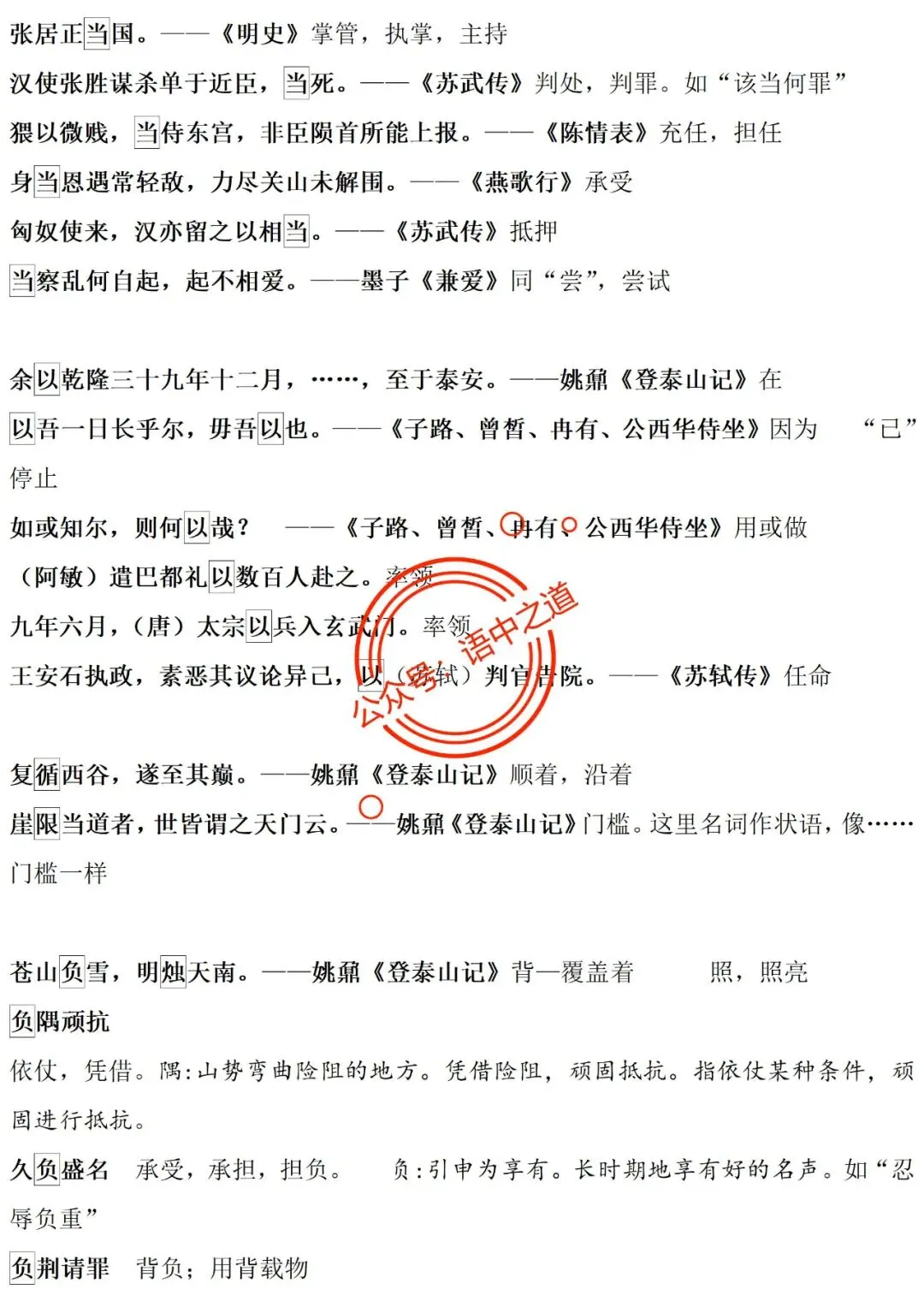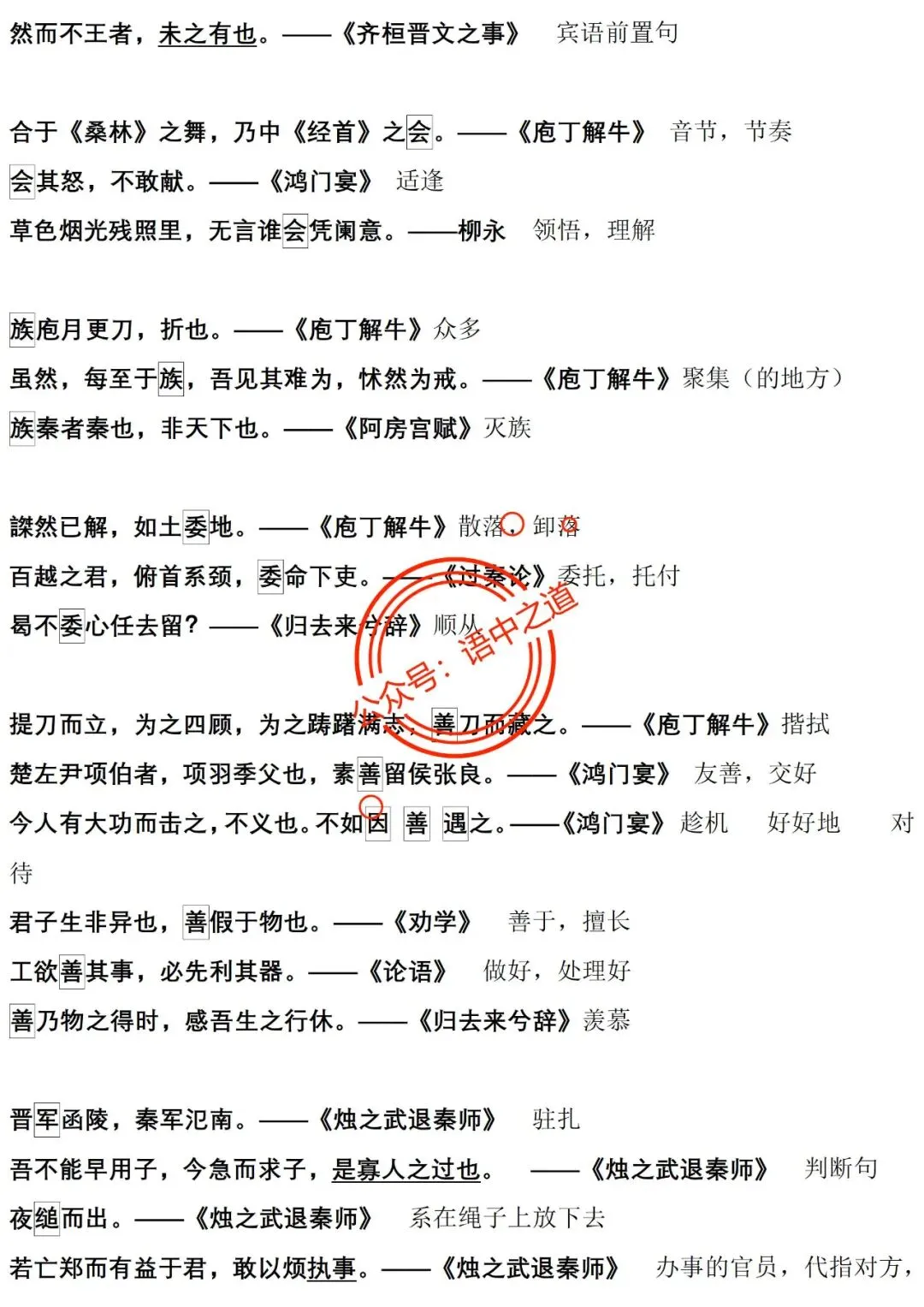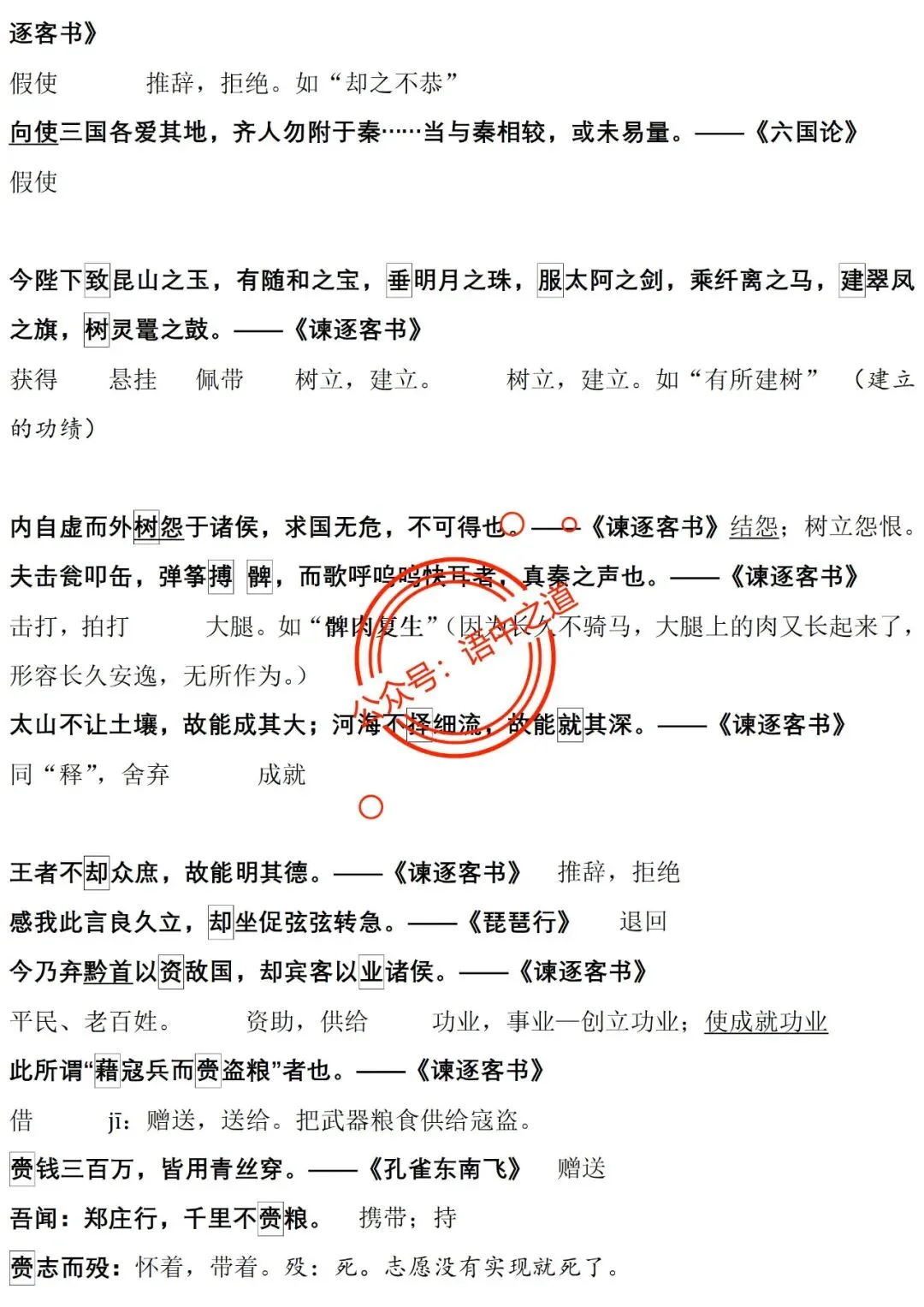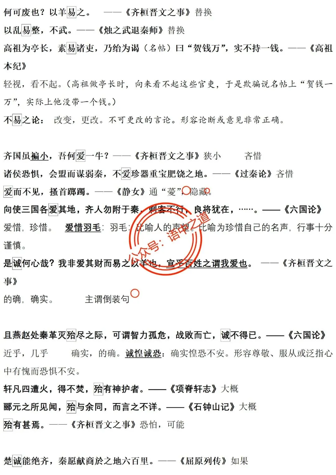 高中语文统编教材【全5册】文言实词【逐册逐个梳理+分类整理】