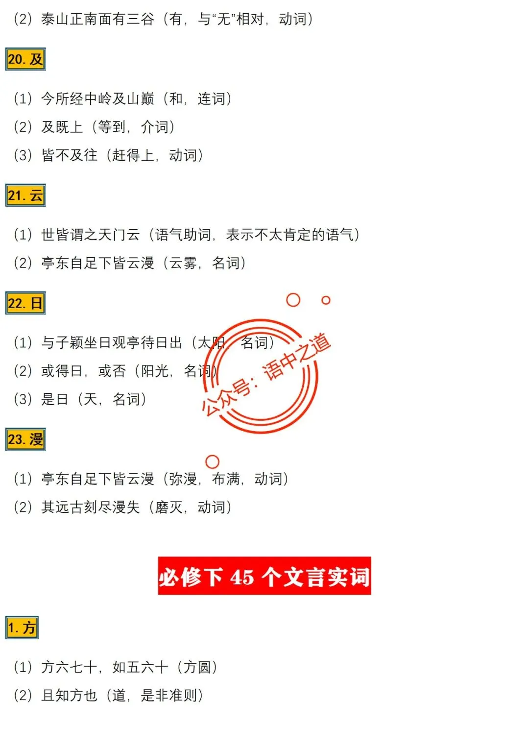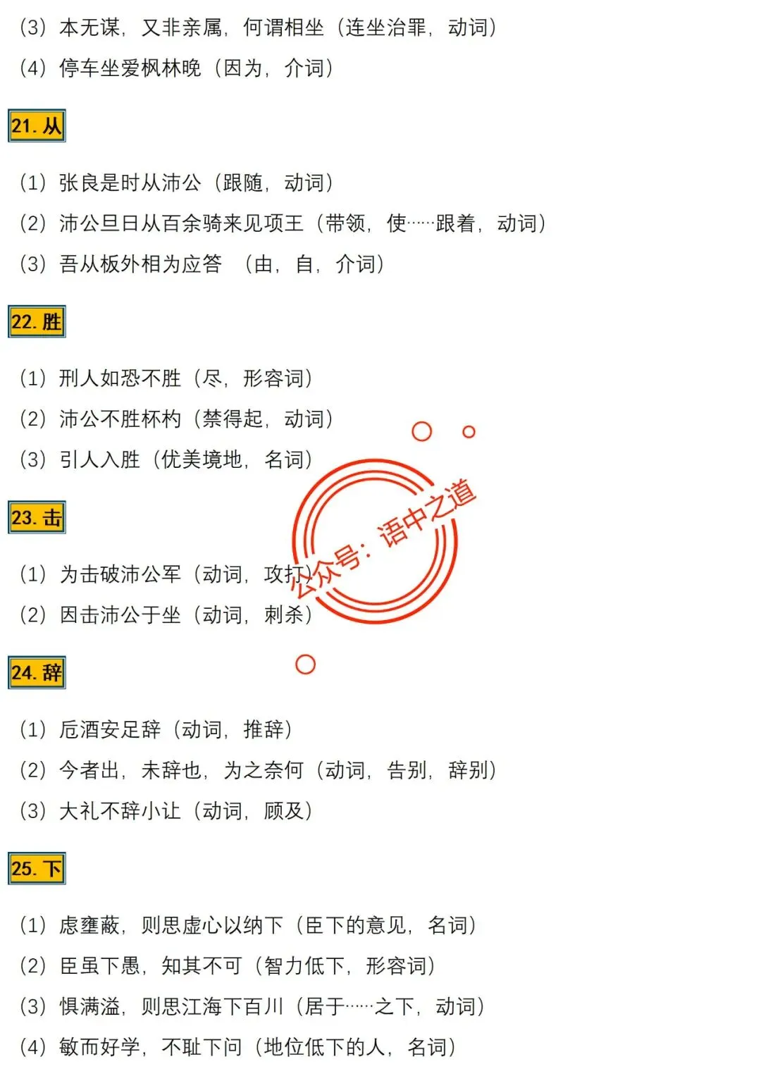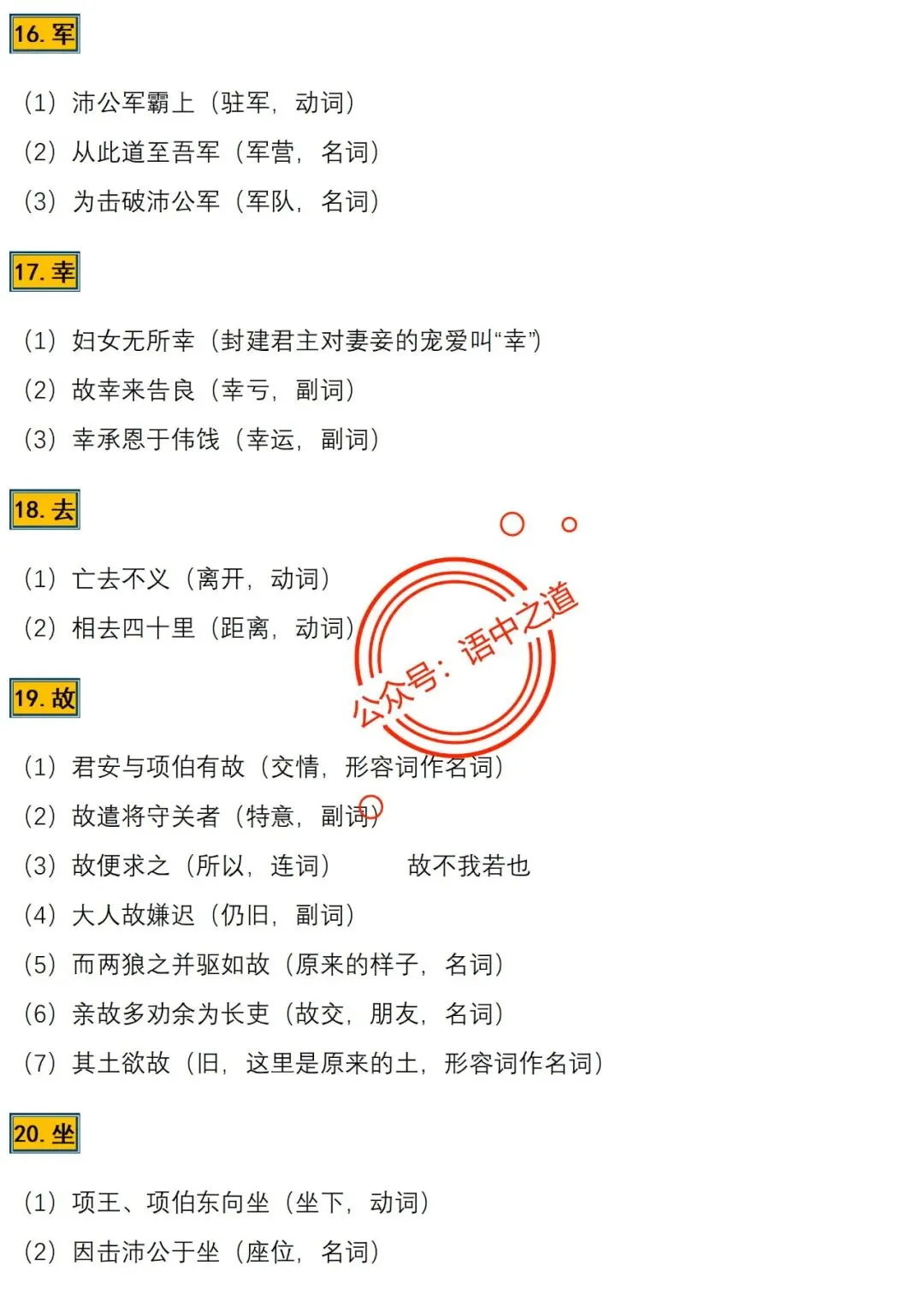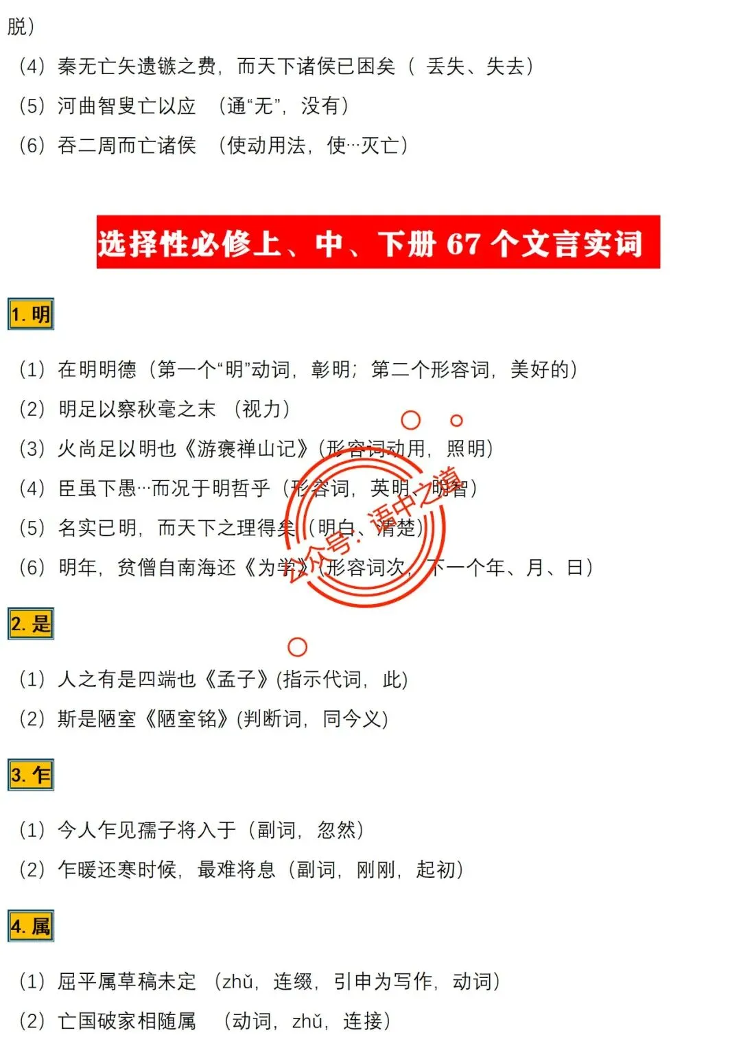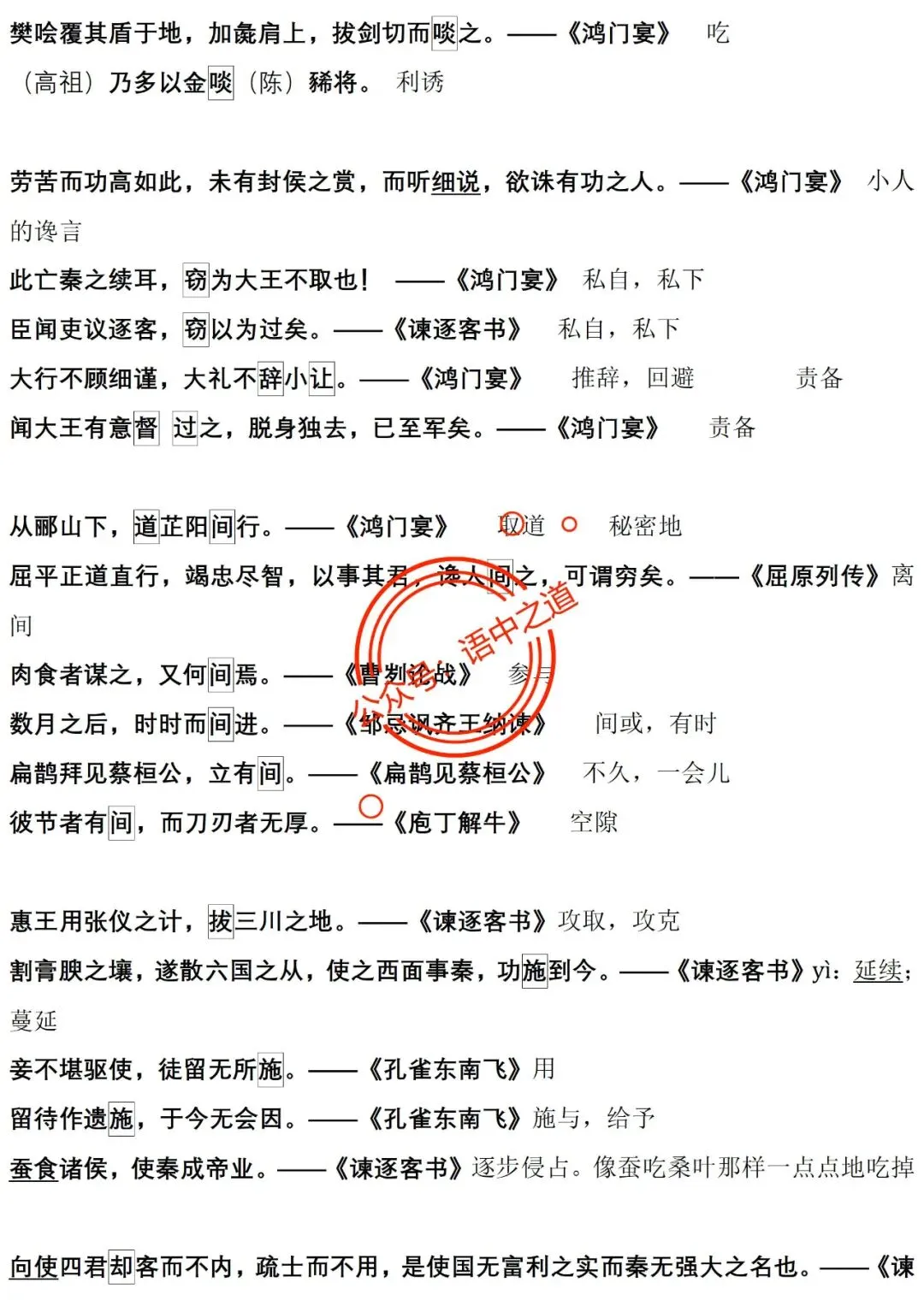 高中语文统编教材【全5册】文言实词【逐册逐个梳理+分类整理】