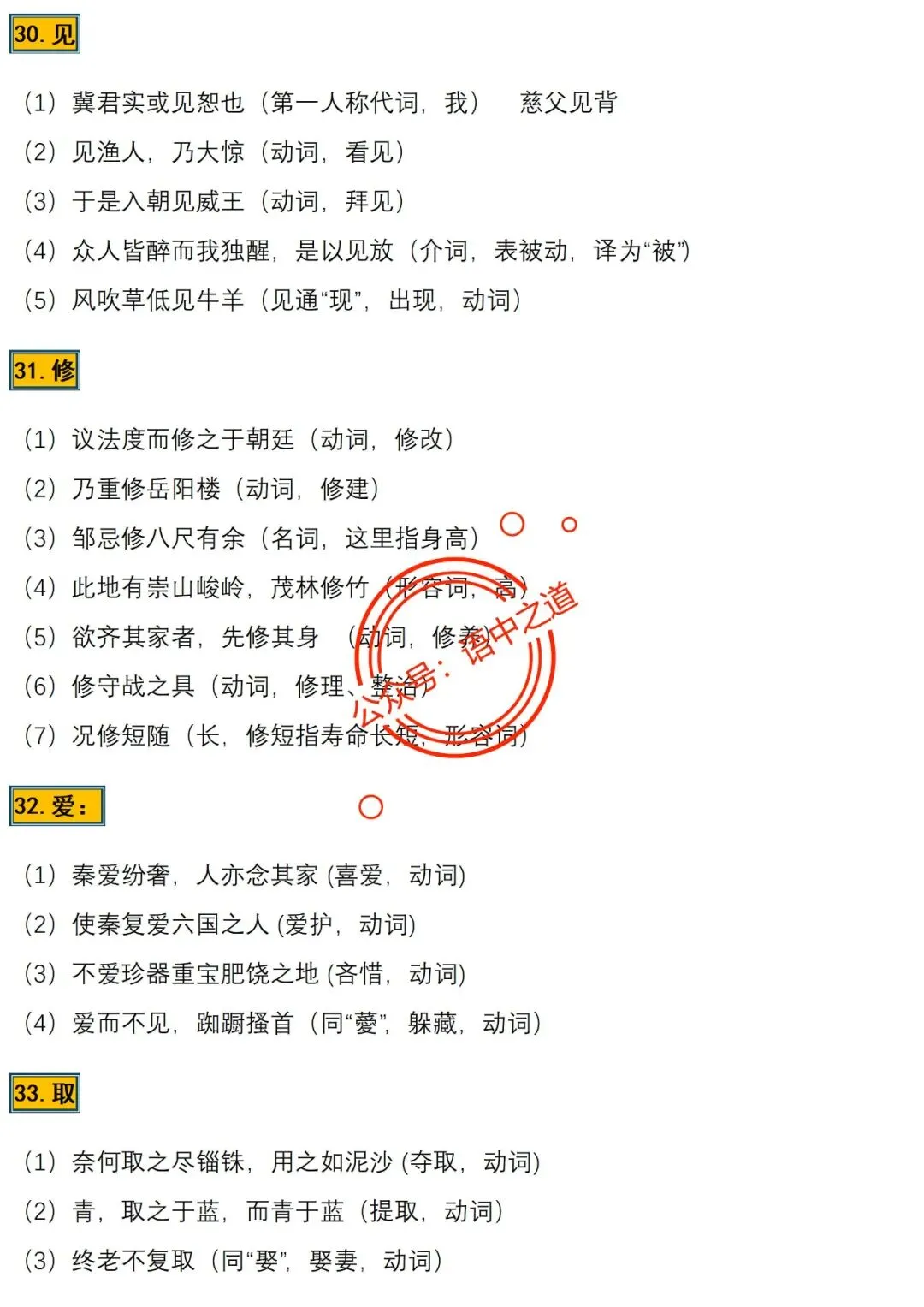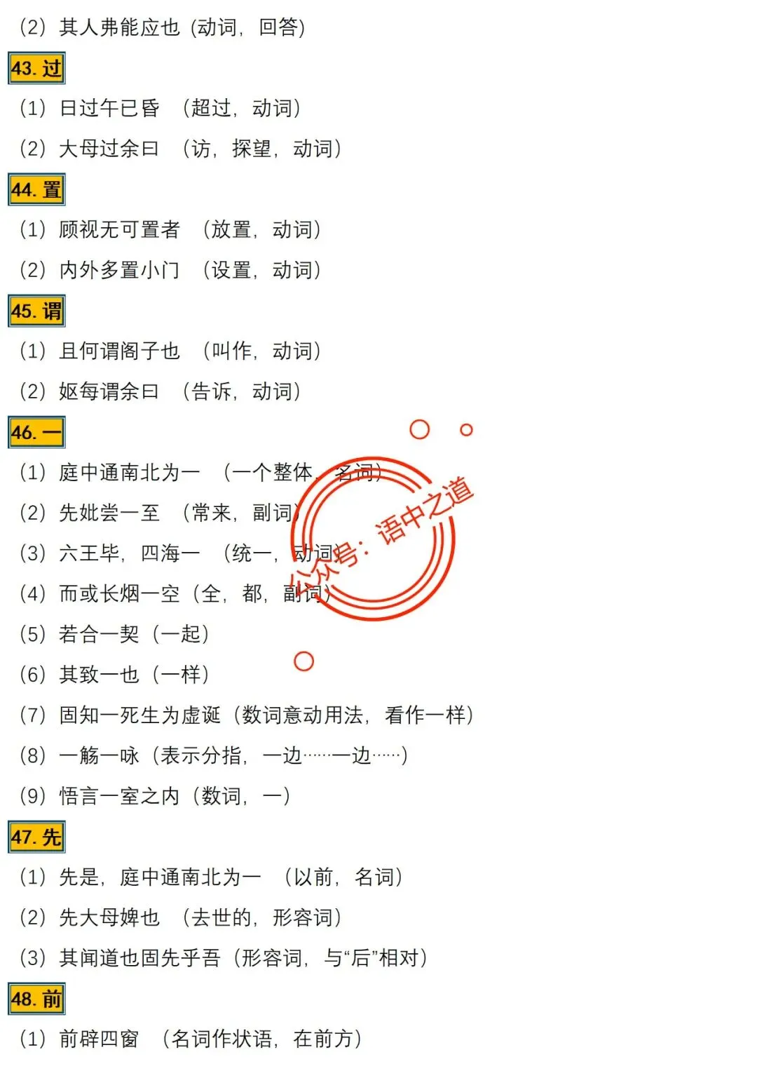 统编【全5册】文言实词【逐册逐个梳理+分类整理】