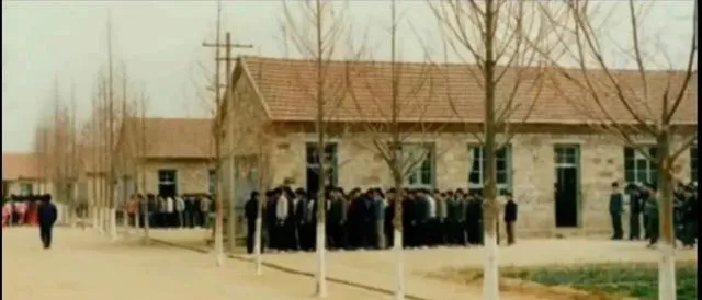 前两张老照片最有意思的地方,是那种一眼就能认出来的80年代学校气质。院子很空,树是新栽的,树干下半截刷着白灰;房子不高,砖墙、瓦顶,窗户也不算大。要是不说年份,你会不会猜成七八十年代的乡镇小学?