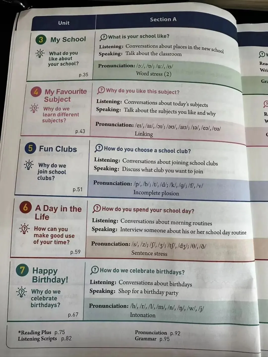 你看,在这些话题下,教材设置了很多开放性问题,给了孩子更多开口说的时间。先听说、再读写,这很符合原版教材的学习顺序。
