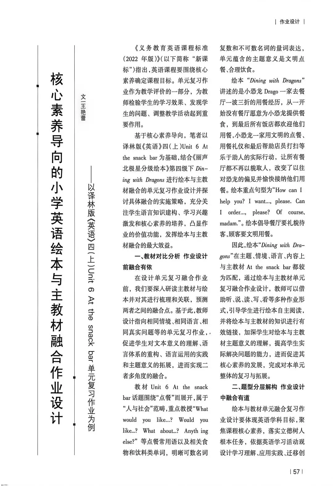期刊阅读||核心素养导向的小学英语绘本与主教材融合作业设计