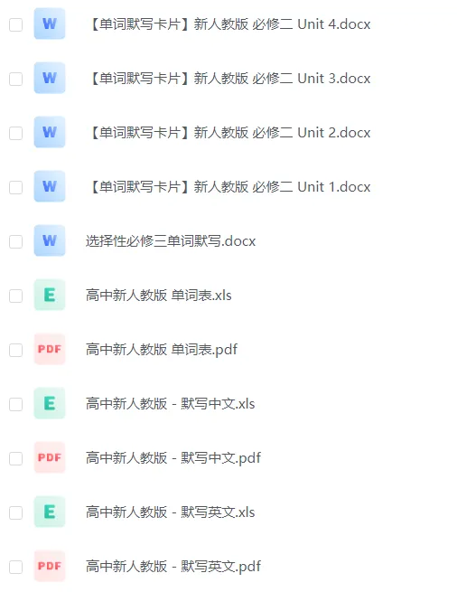 📚 小编贴心整理:人教版高中英语教材全册单词资源包✅ 必修1-3 单词表✅ 每册配套单词默写练习表✅ 便携式单词默写卡片