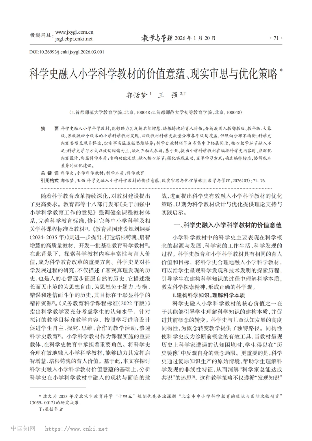 >科学史融入小学科学教材的价值意蕴、现实审思与优化策略