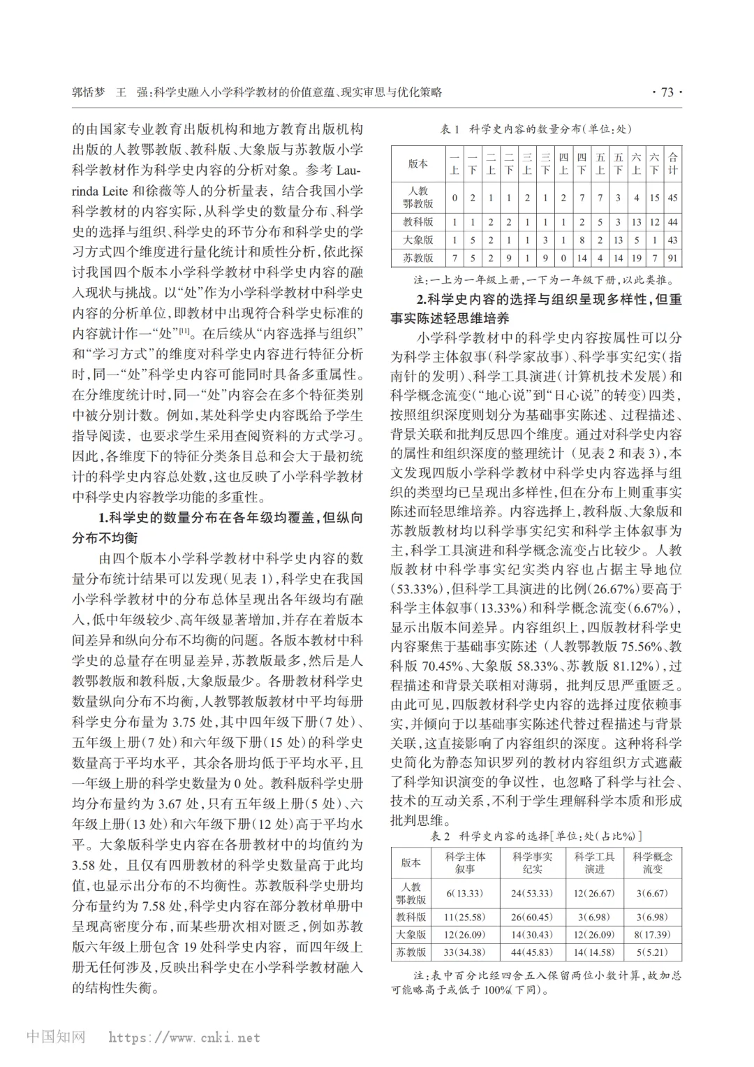 科学史融入小学科学教材的价值意蕴、现实审思与优化策略