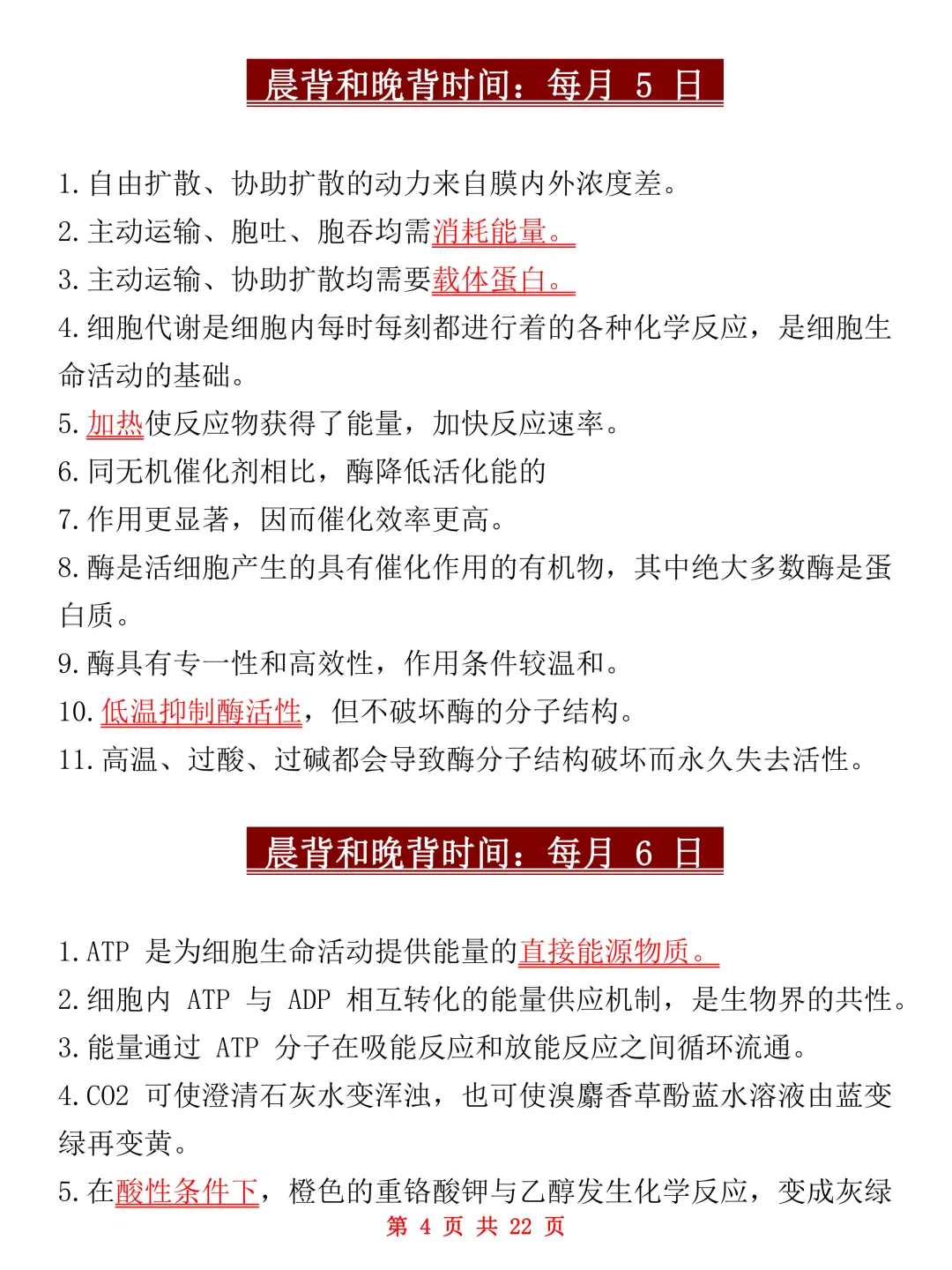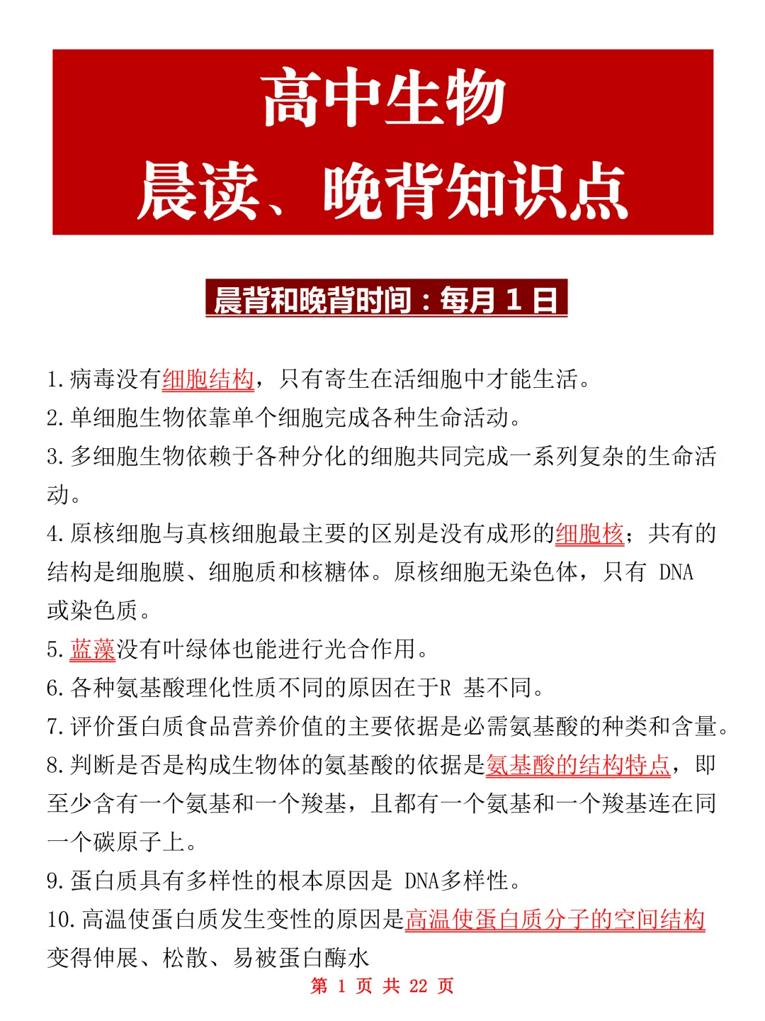 为此今天把已经整理好的【2026新高考】新教材高中生物晨读、晚背知识点分享给大家,高中三年有这一份就够了!
