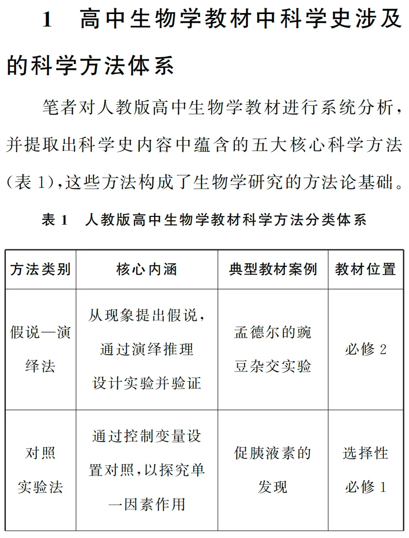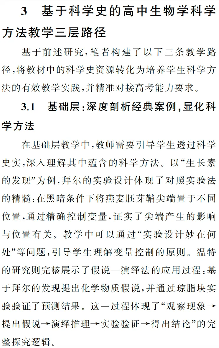 从教材到高考:高中生物学科学史中的方法教学探究