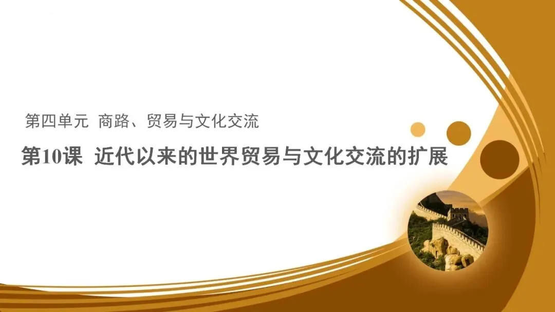 《近代以来的世界贸易与文化交流的扩展》是第四单元《商路、贸易与文化交流》的重要组成部分,本单元旨在通过介绍不同时代、不同类型的商路帮助学生理解商业贸易活动在古代和近代经济文化交流中扮演的重要角色。本课主要讲授的内容是近代以来全球贸易网络逐渐形成,以及伴随商品流动进行的全球性文化交流。因此本课对学生全面了解“商路、贸易与文化交流”这一主题起着重要作用。