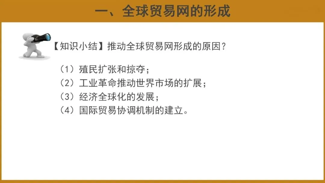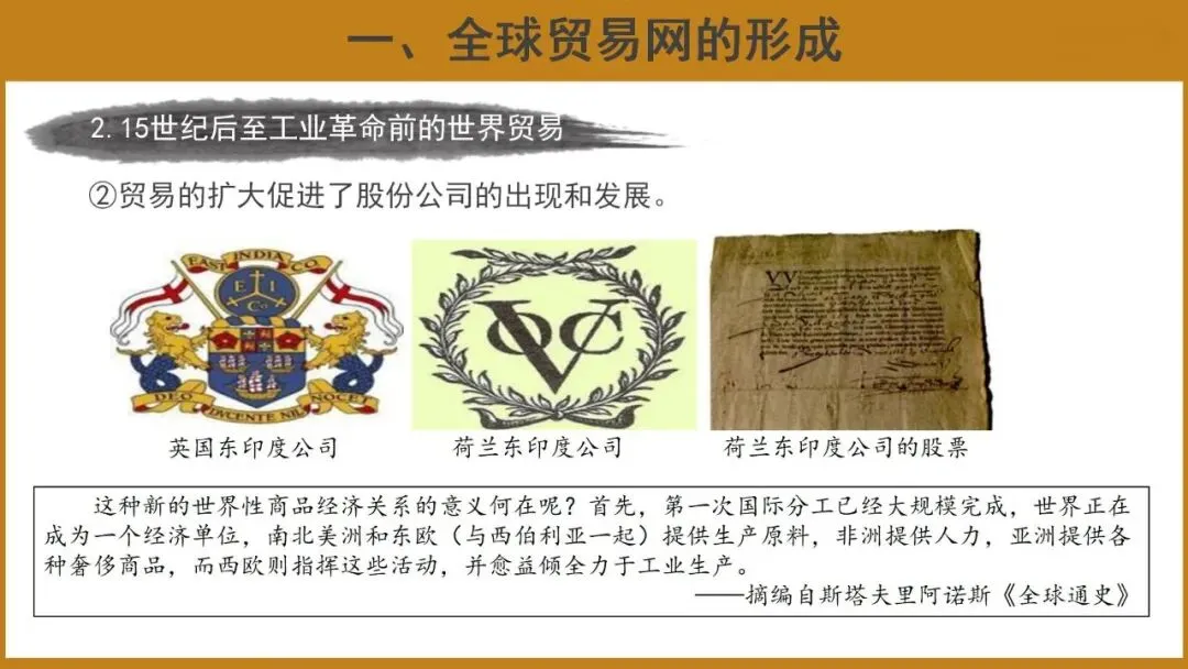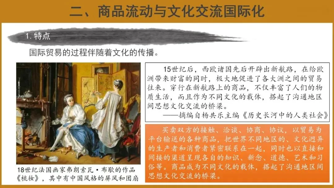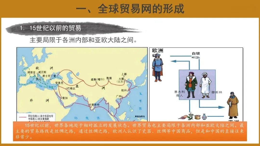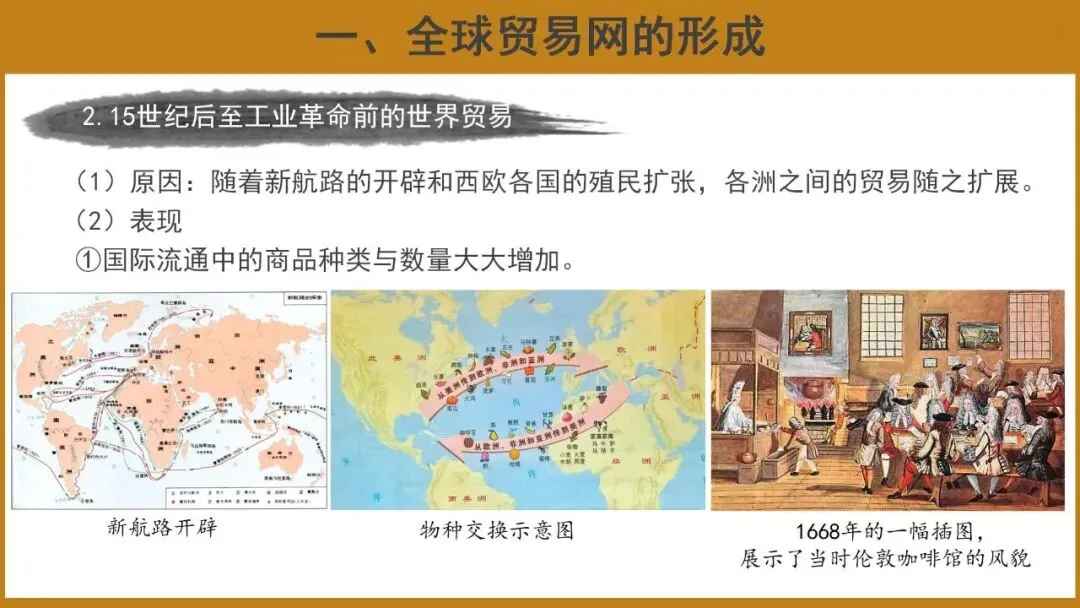 本课共分为两个子目,即全球贸易网的形成和商品流动与文化交流国际化。