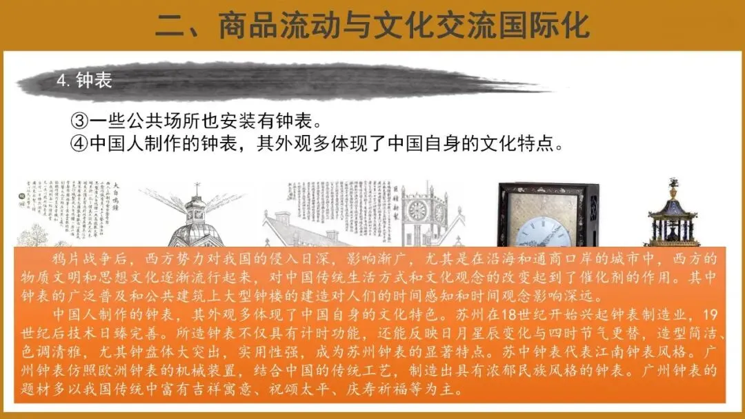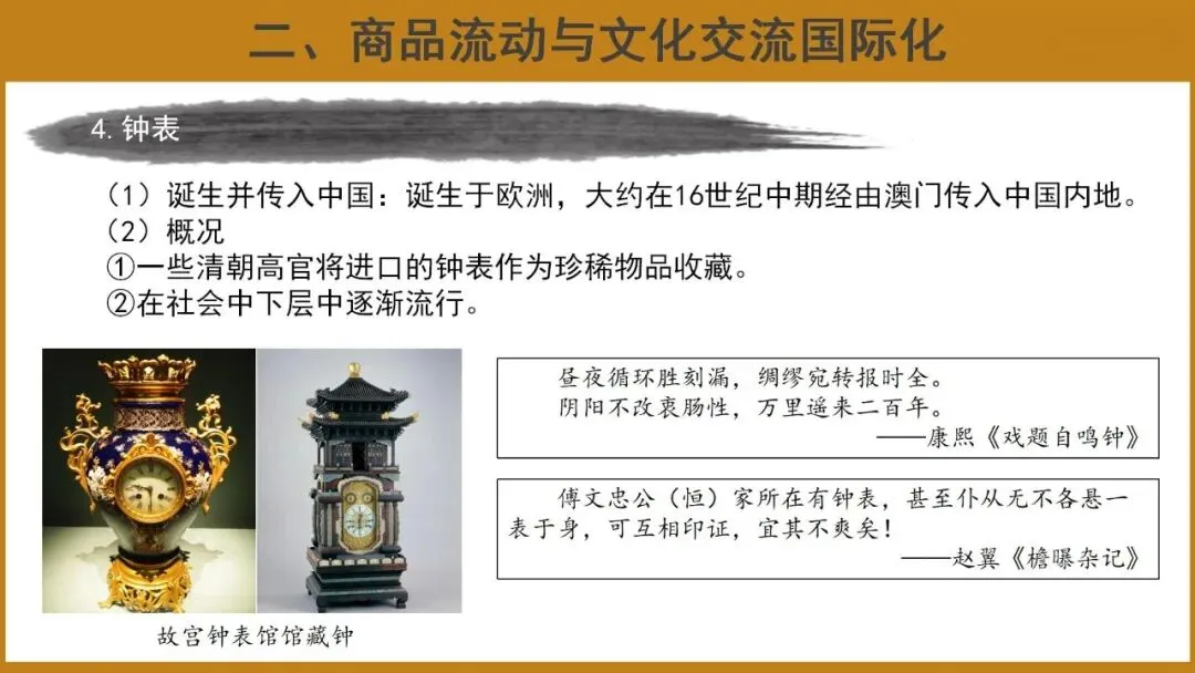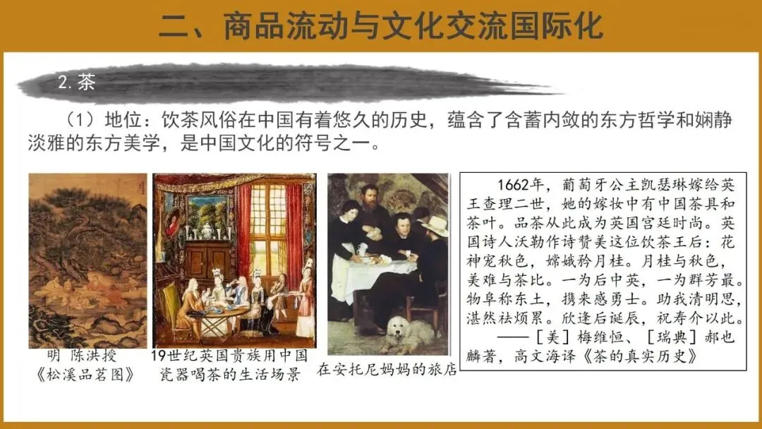 2.了解商品的世界性流动(茶叶、服饰、钟表等)的发展脉络,理解其发展变化的原因和影响。