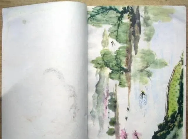 这个页码不好找,但一眼认出来就是小时候画风独特的淡彩插页,水粉勾染,松树远山,有几只蜻蜓和小虫点缀,普通课文里很少见这种画,印刷不上色反而显得灵气十足,有同学还拿水彩笔照猫画虎学着涂,反正大半能画糊,老师说过"这样的画最难,越是看着简单越考功夫",老课本的美真不是搁在嘴上说。