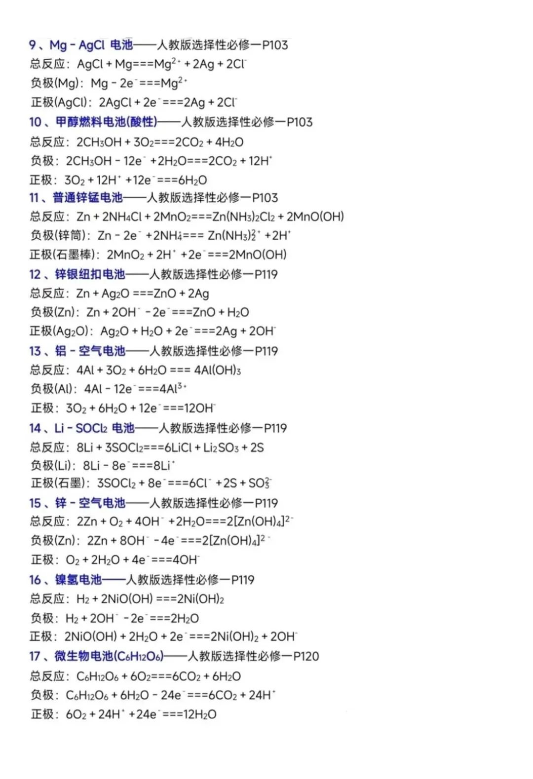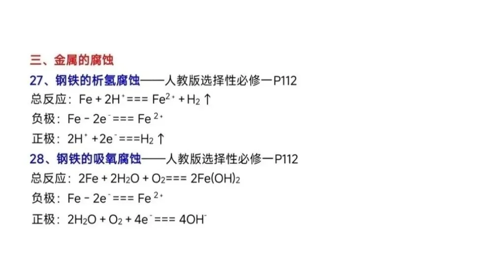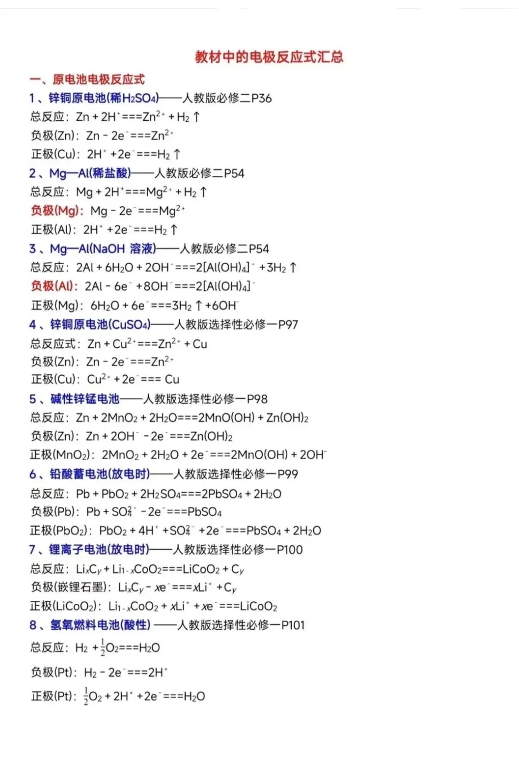 >高中化学教材中电极反应式汇总