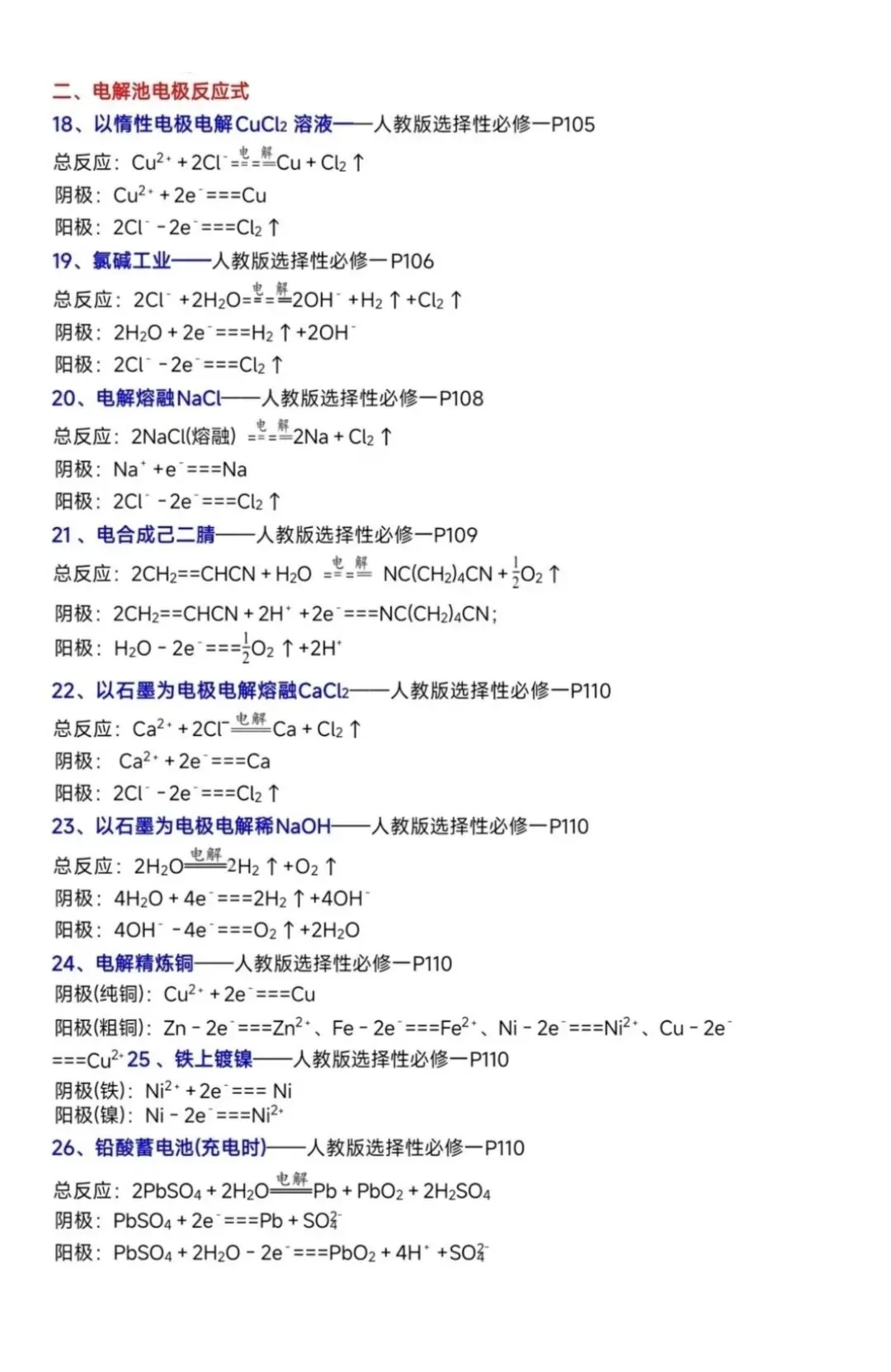 高中化学教材中电极反应式汇总
