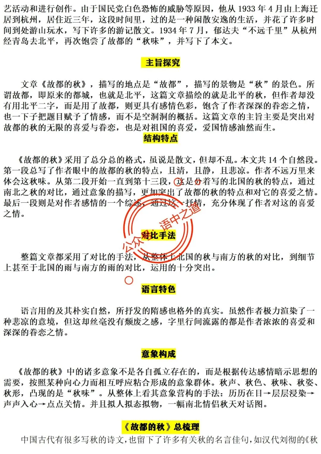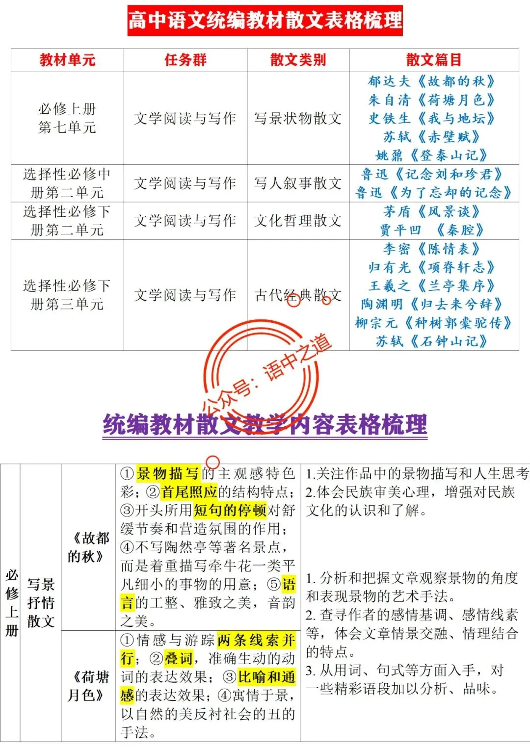 统编【全5册】散文知识点全梳理(结构+语言+手法+标题)