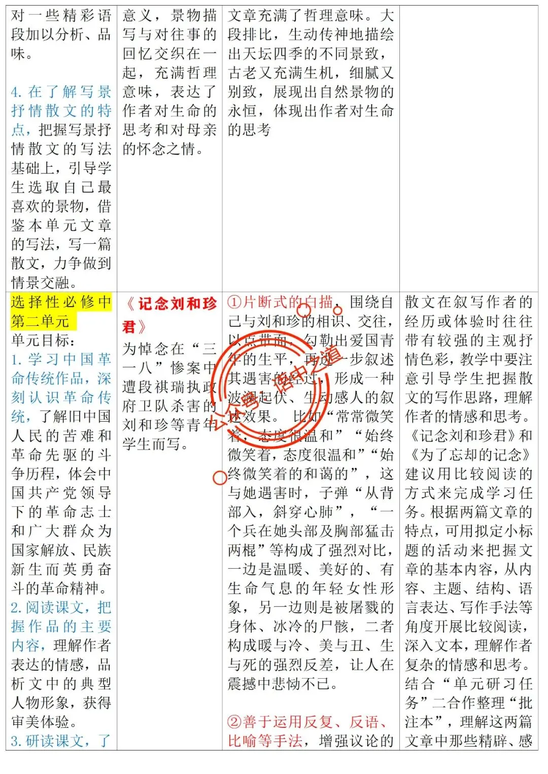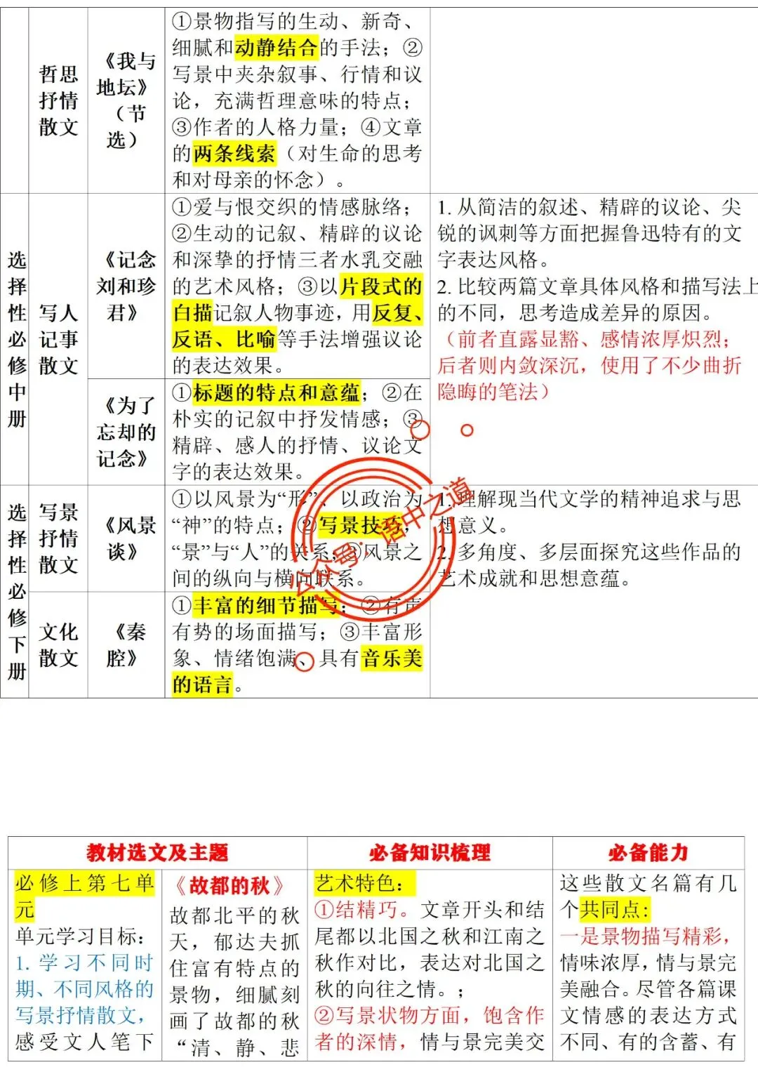 统编【全5册】教材散文完全梳理【表格梳理+逐课梳理】