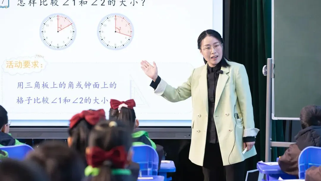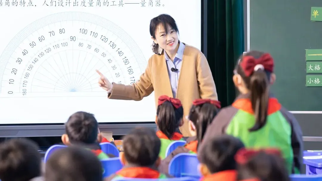 具体到两类课例,关于“数的运算”教学,郭主任提醒老师们:算理需自然过渡到算法,要重视运算技能的当堂形成,重视全员达标的必要性;关于“角的测量”教学,他则从测量的本质、测量工具的理解、量感的形成三个角度提出思考。