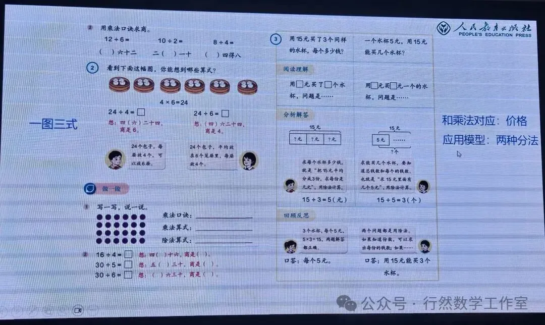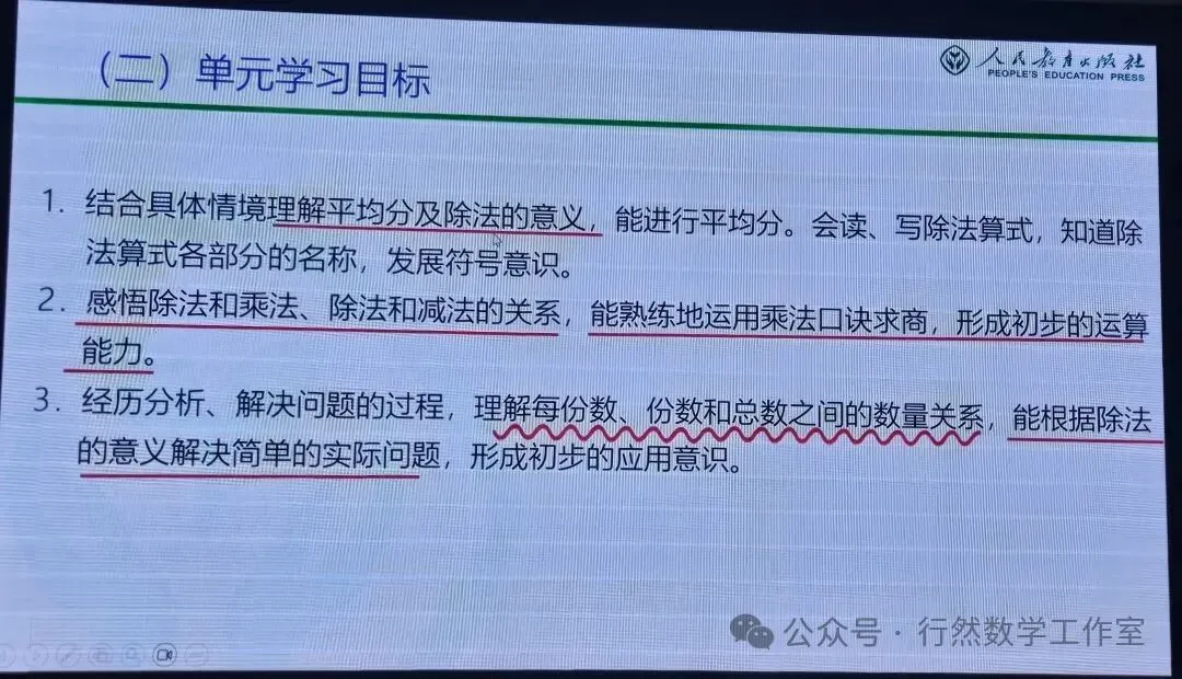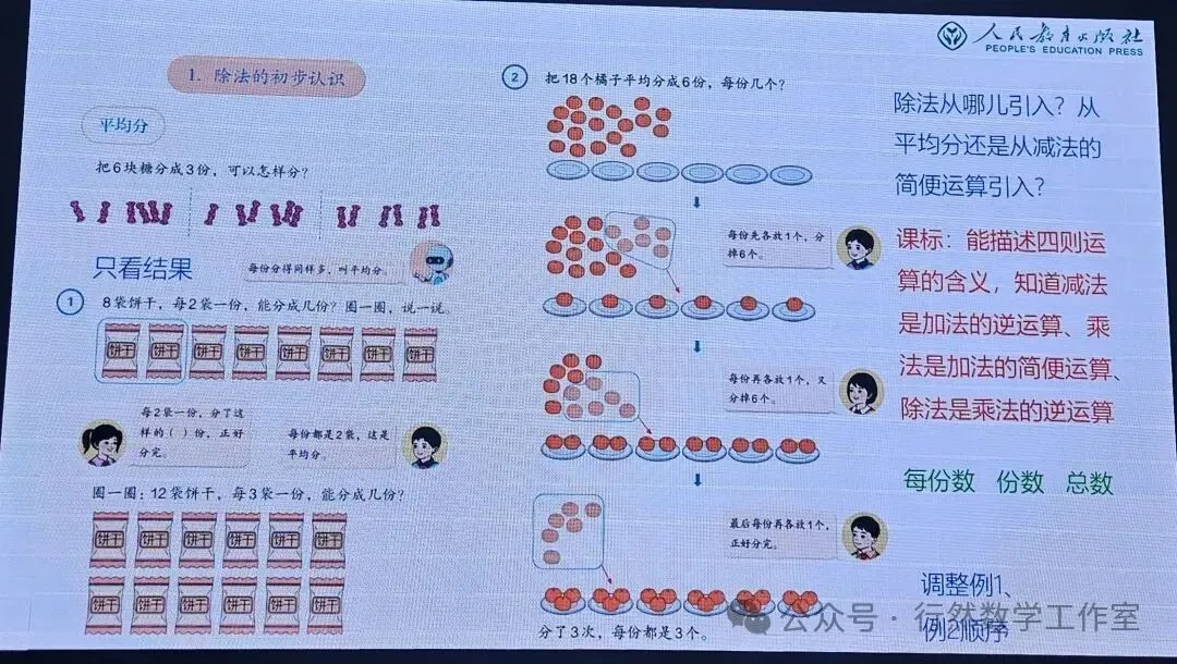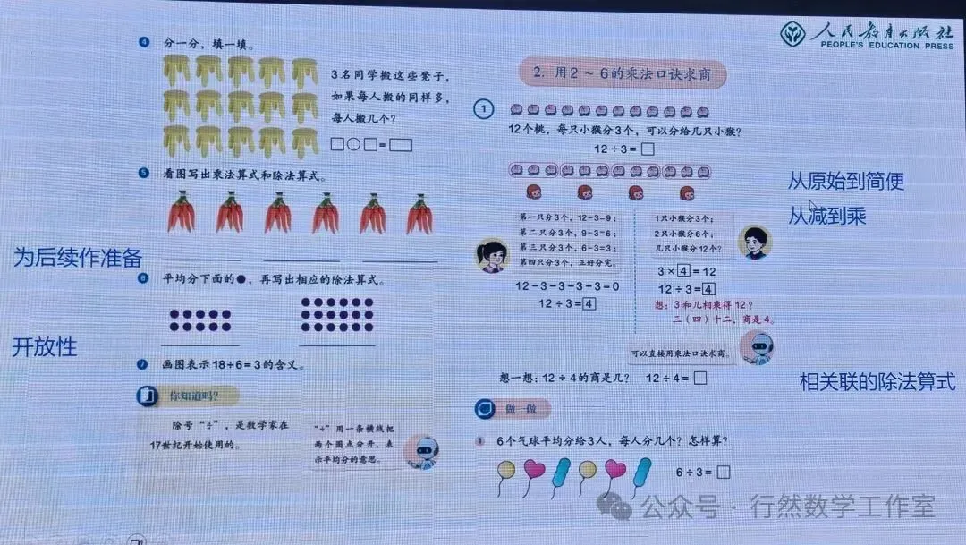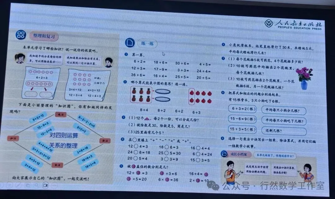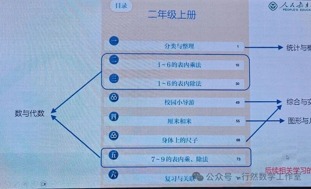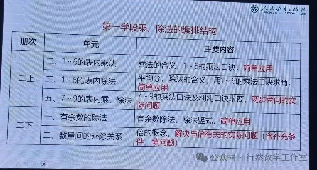 第一单元:由原一年级下册的“分类与整理”调整而来,旨在培养学生的逻辑归纳能力。第二、三单元:整合了原二年级下册的表内除法内容,包括“1~6的表内除法”和“7~9的表内除法”,这样的编排依赖乘法基础,有助于学生系统学习乘除法,建立乘除法之间的联系。第四单元:是原本的“长度单位”单元,让学生认识厘米和米以及线段,理解统一长度单位的必要性,建立长度观念。